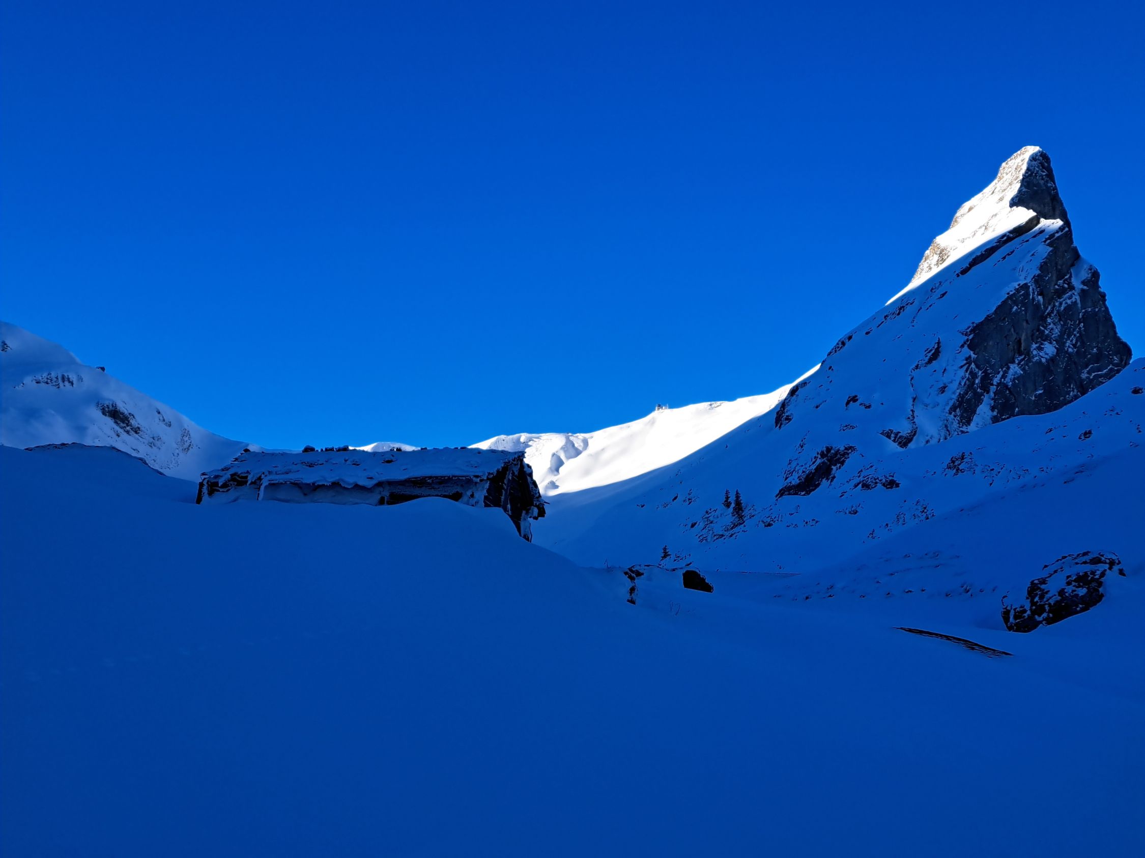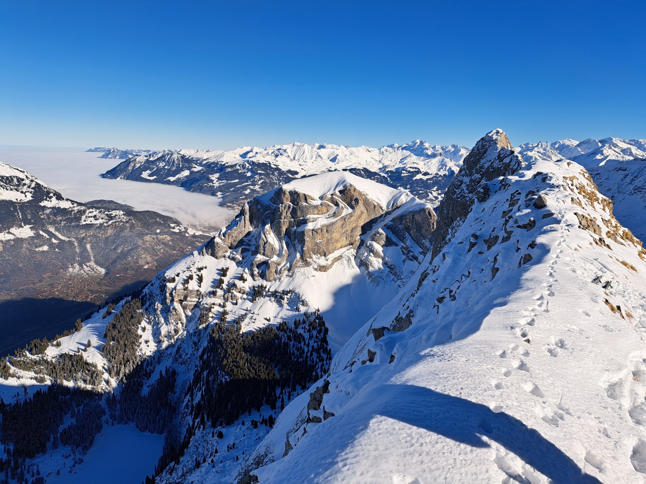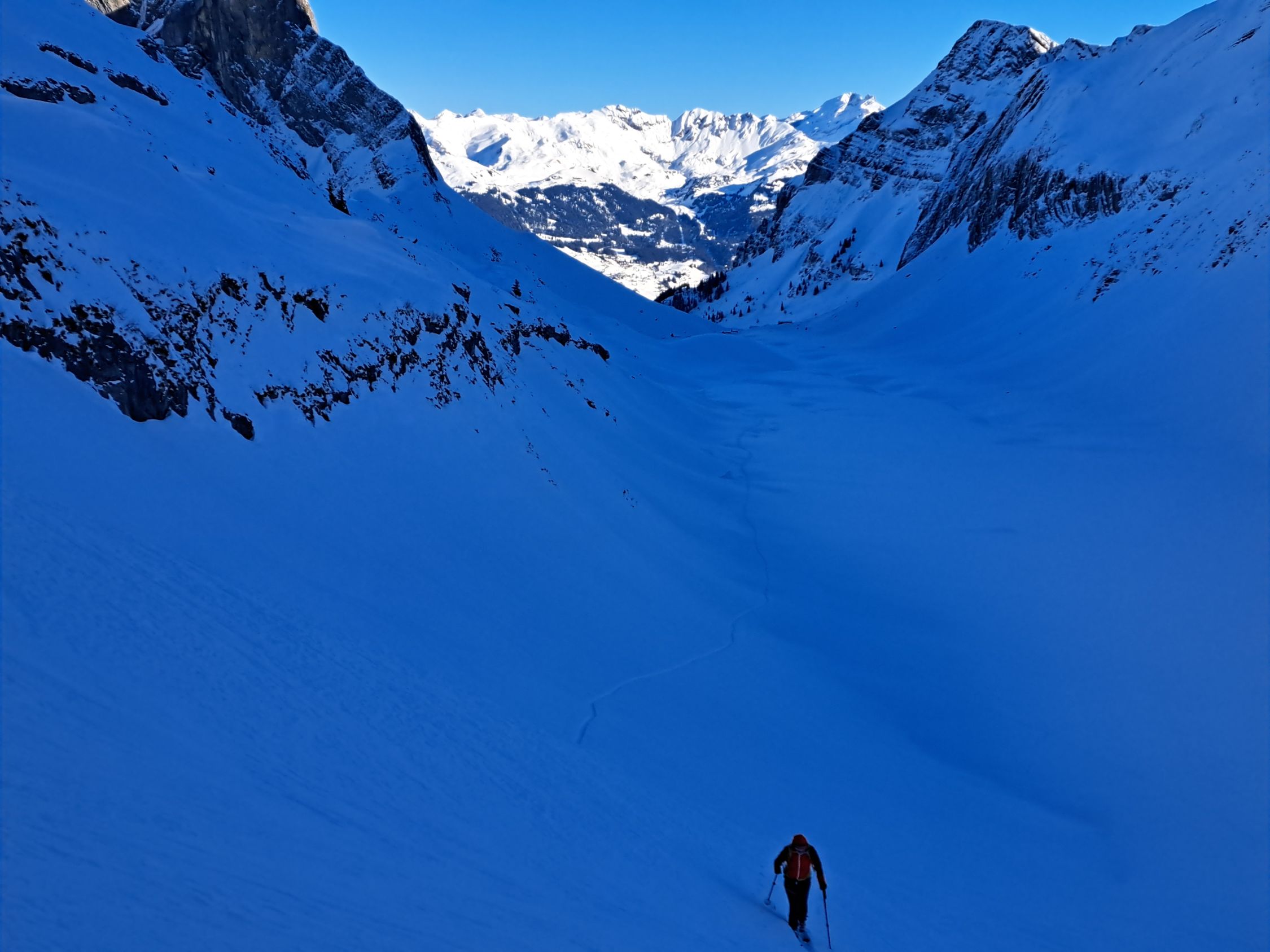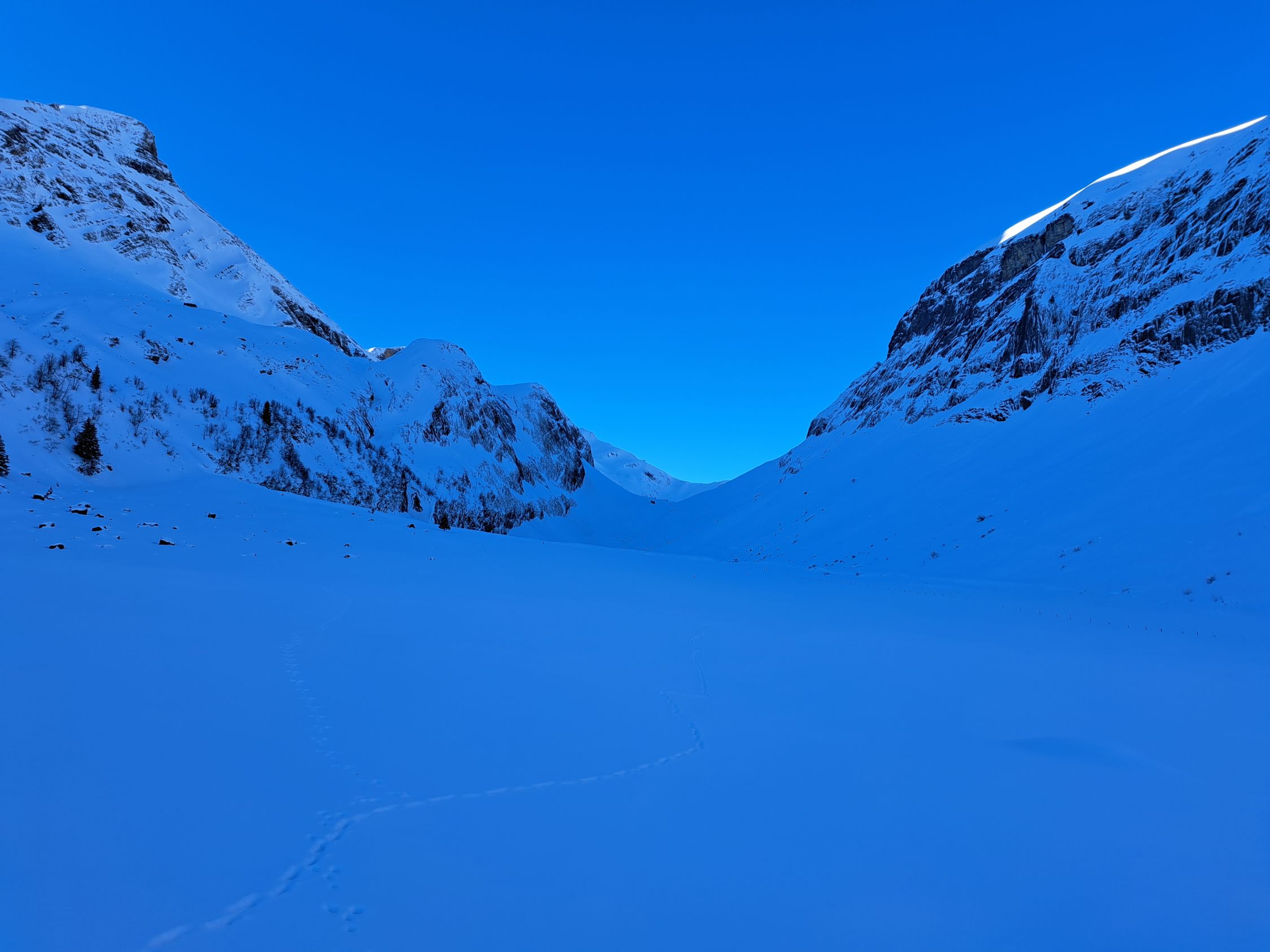 Diese Route ist Total Einsam und im Januar alles am Schatten ausser der Gipfelhang.