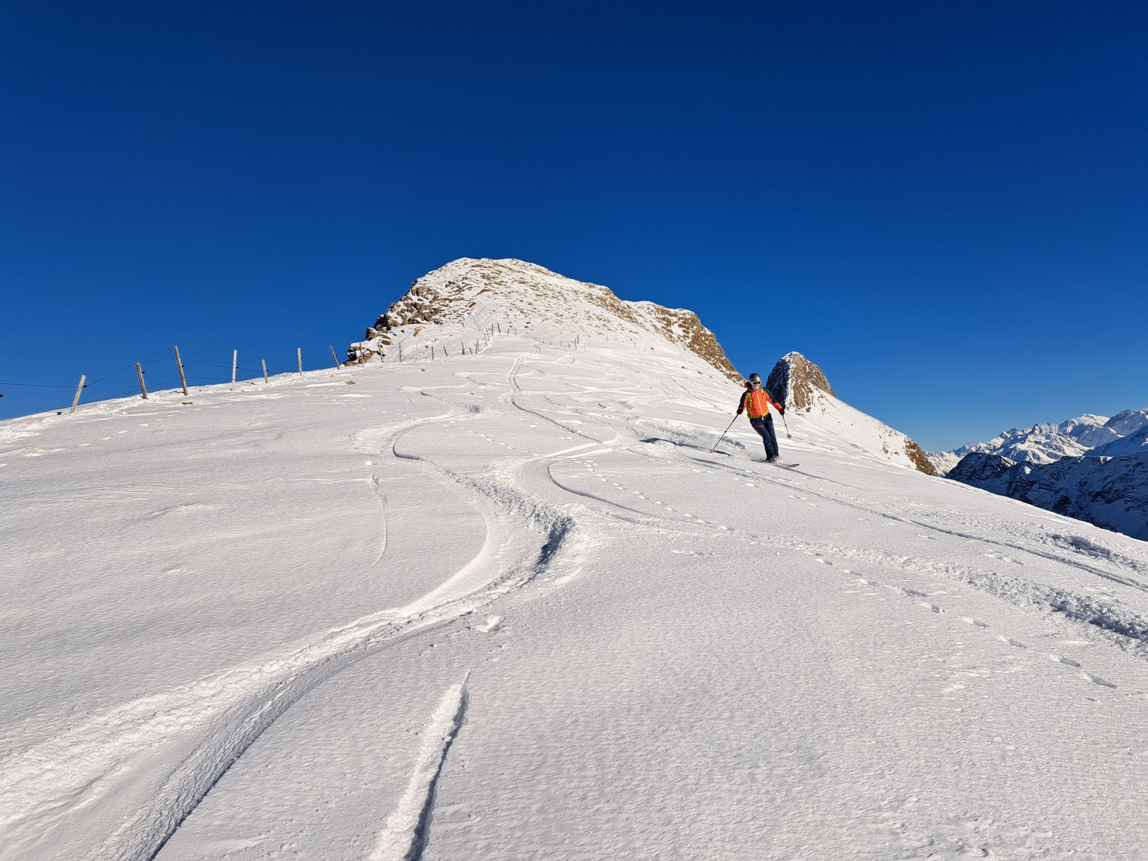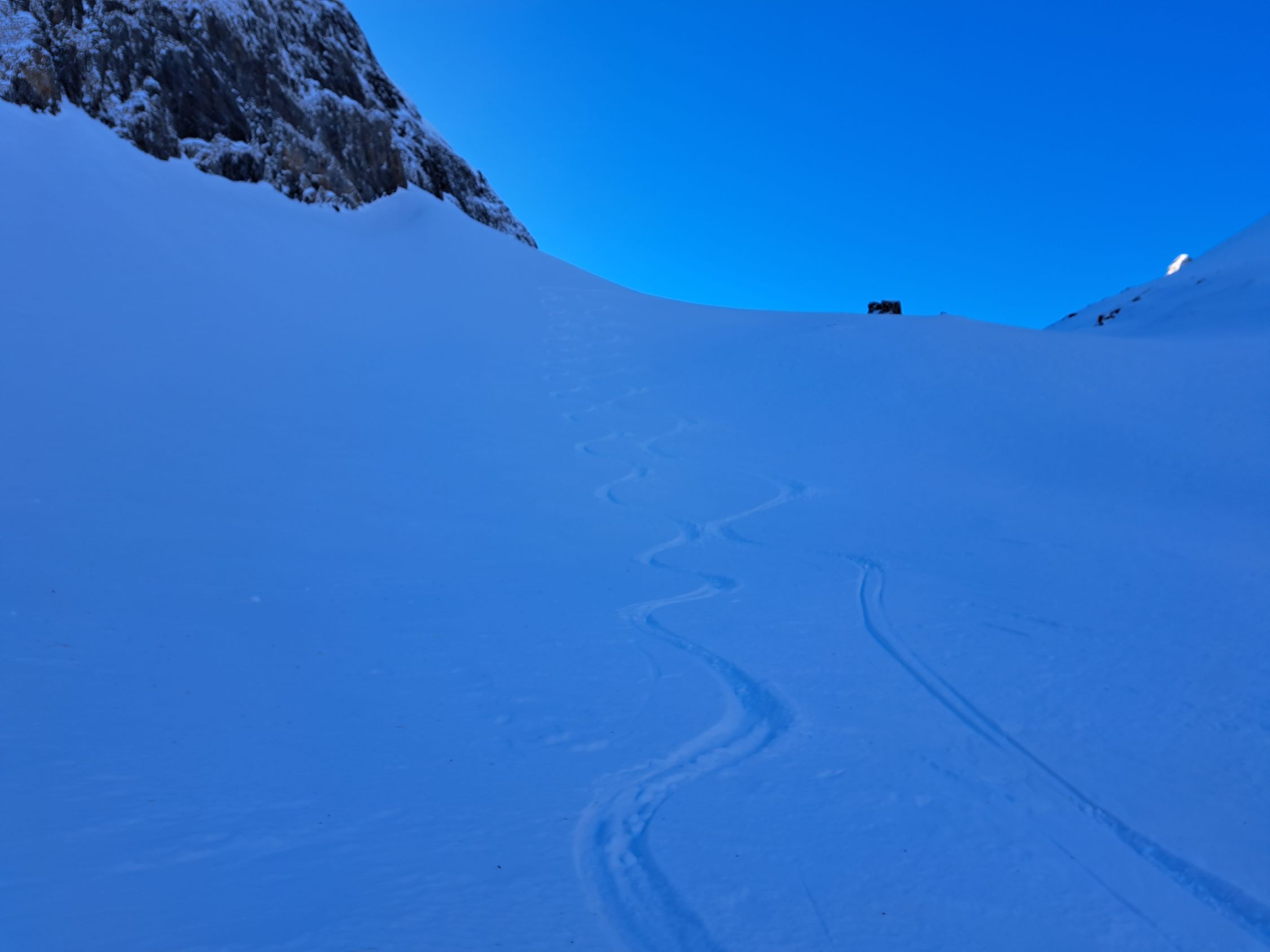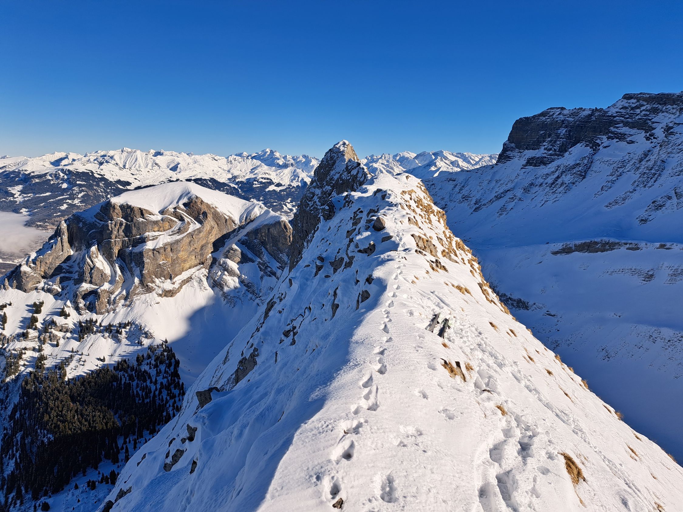 Diese Route ist Total Einsam und im Januar alles am Schatten ausser der Gipfelhang.