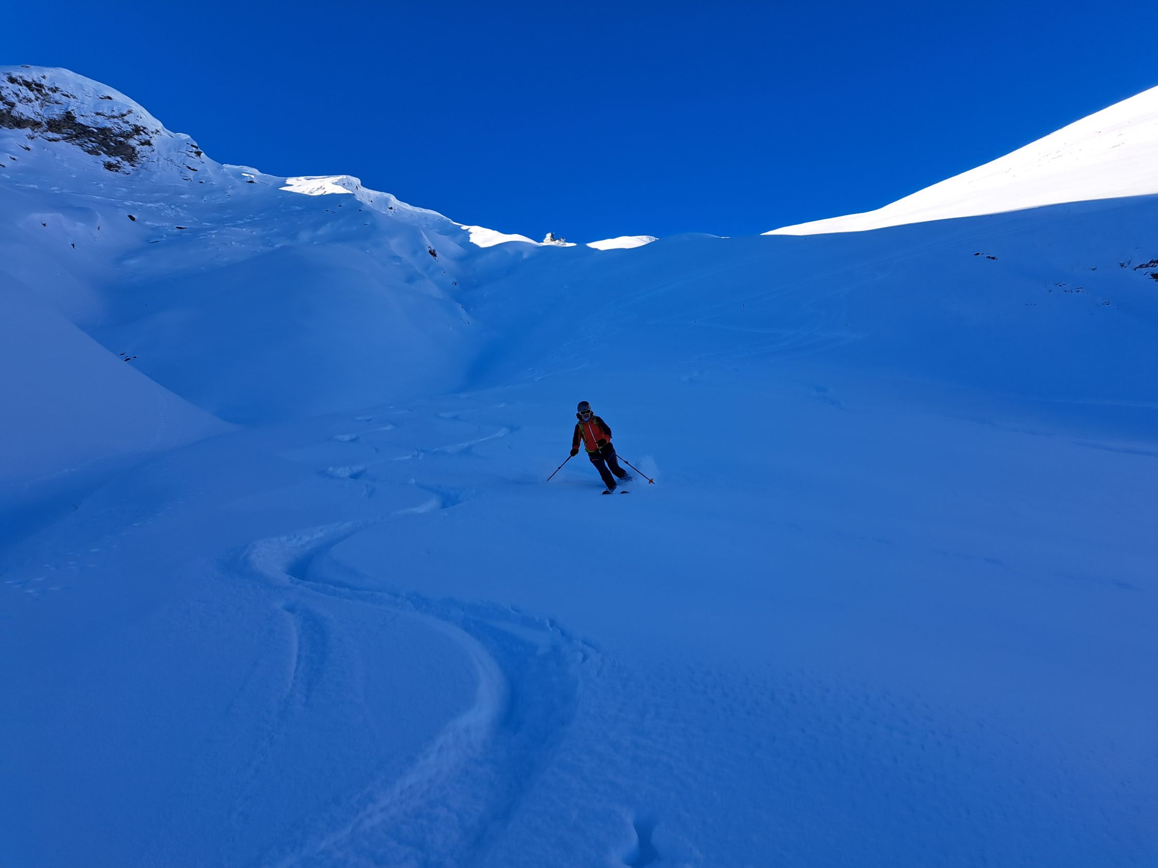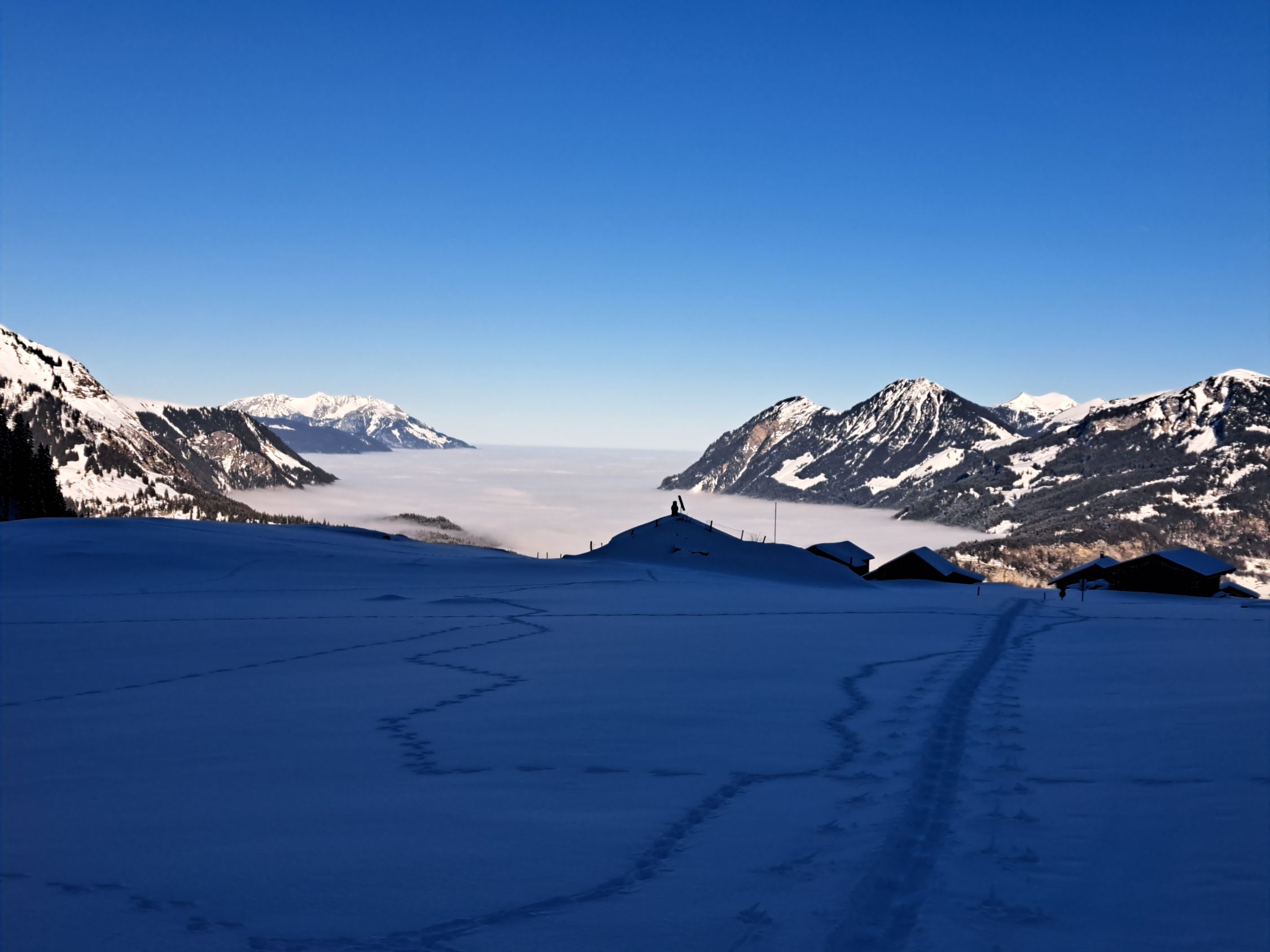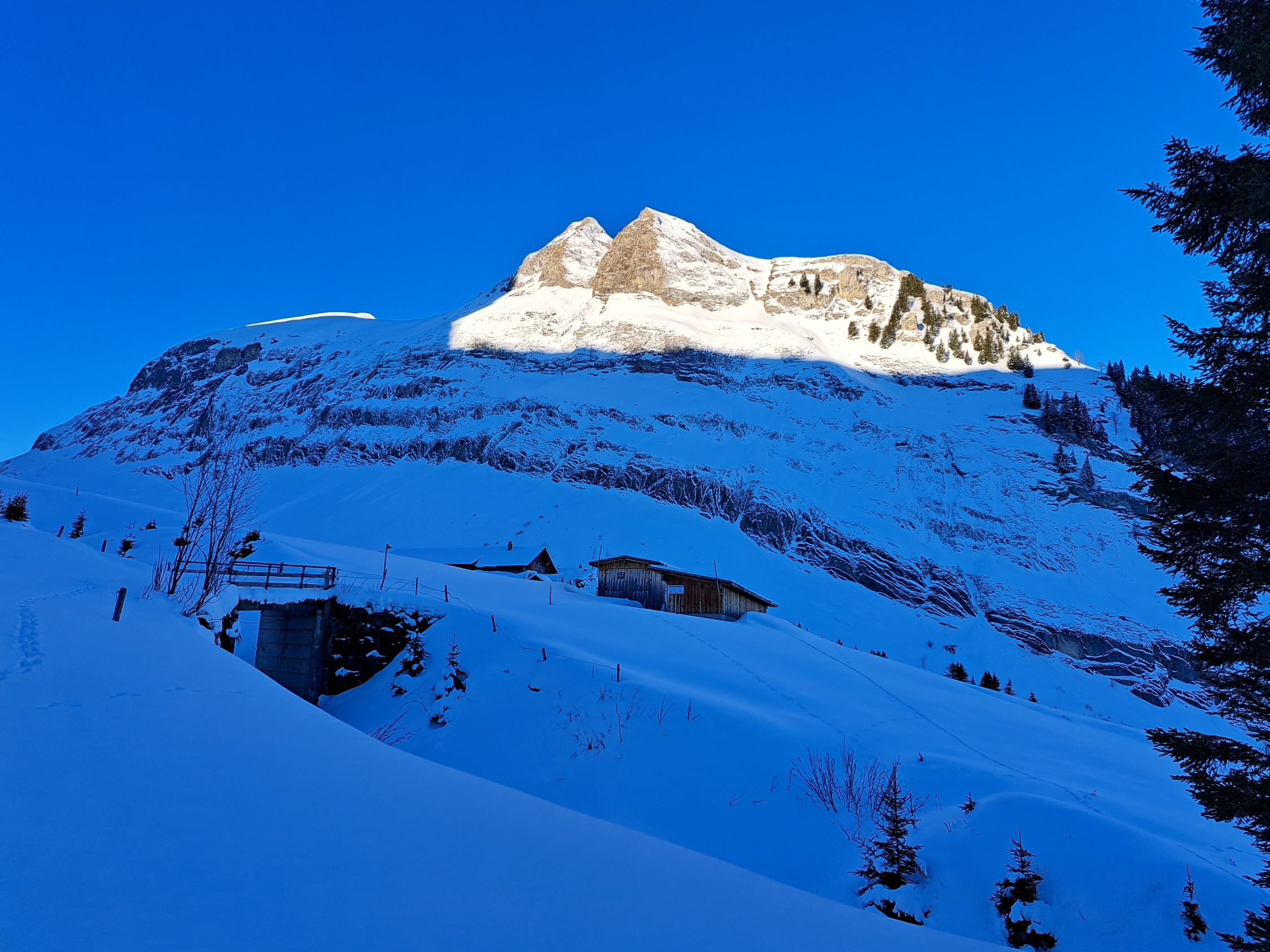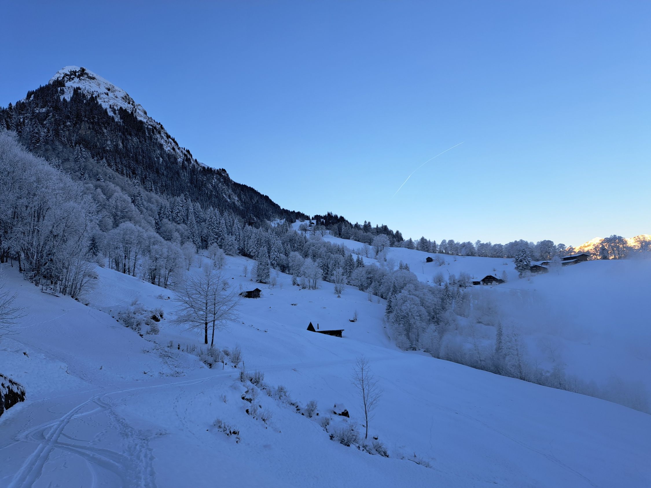 Diese Route ist Total Einsam und im Januar alles am Schatten ausser der Gipfelhang.