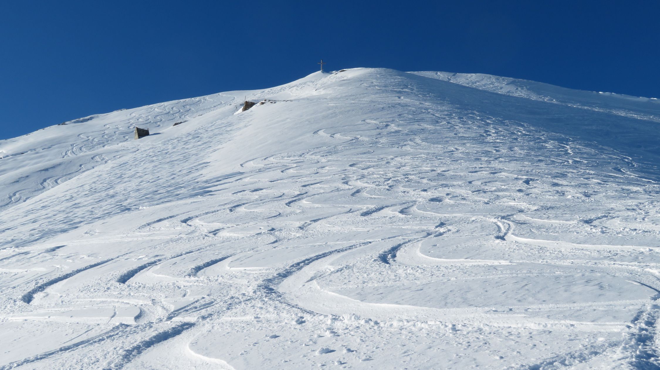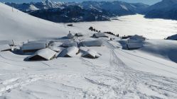 Es liegt viel Schnee. Pulver. Es hat verständlicherweise schon einige Abfahrtsspuren. Die Hänge sind aber trotzdem sehr schön zu befahren.