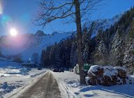 Aufstieg: Vom Parkplatz bis zum Gipfel hat es Pulverschnee und eine gute Spur. Die letzten 50 Hm zur Lücke sind mit den Skis machbar.