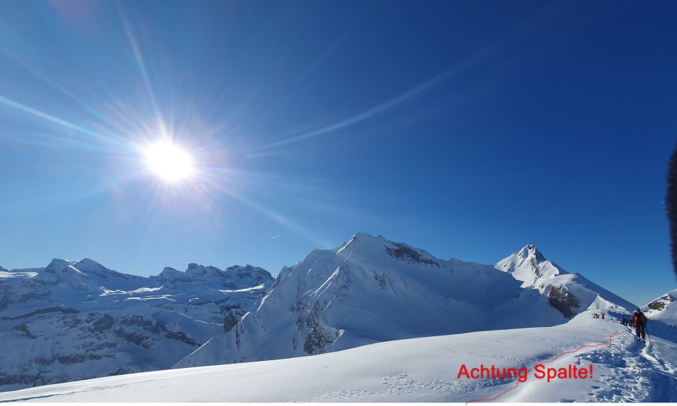 Achtung: Auf Glattgrat nicht zu weit raus auf die Wächte. Es hat Spalten, die man fast nicht sieht. Anscheinend ist der Schnee dort vom Boden weggerutscht und es entstand ein Spalt, der nur schlecht mit Schnee gefüllt ist.