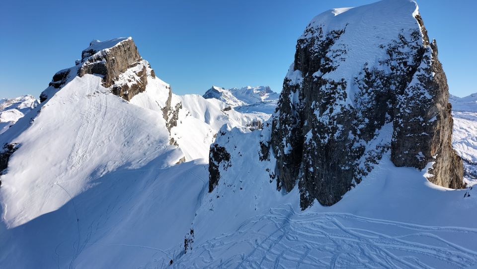Start der Tour am 9.15 Uhr bei der Weglosen, dasWetter heute perfekt, mit - 10 Grad kalt, unten noch eher wenig Schnee aber dank der Piste auch gut, schon bald hatte es viel Schnee mit super Verhältnissen, im Gipfelbereich schon ziemlich verfahren, aber weiter unten noch viel Platz für neue Spuren.