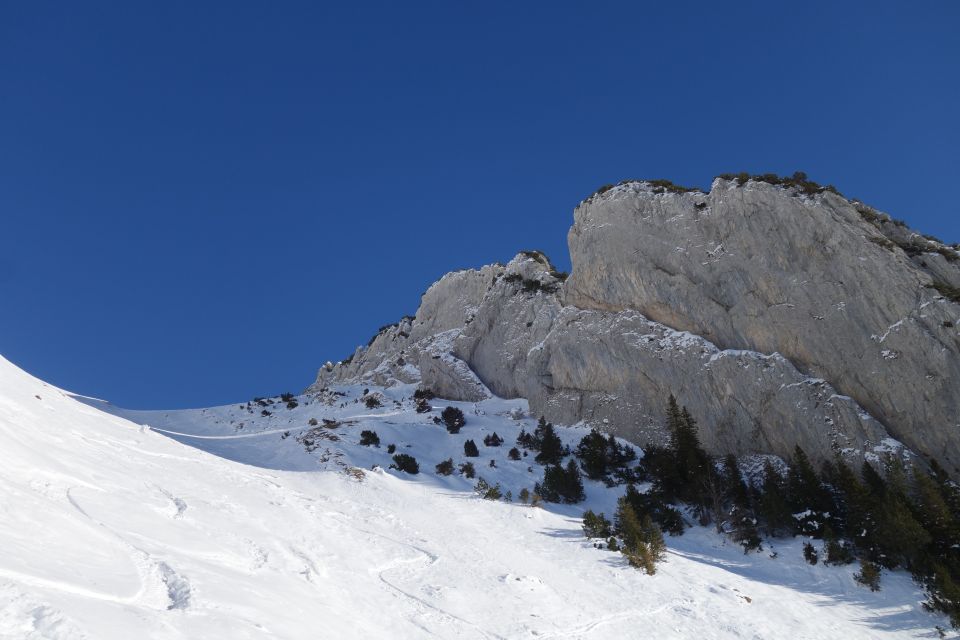 Start um 10:30 in Waldhaus, bis Gamplüt noch 20 cm Pulverschnee, Zur Schofhütte muss man die SKi für 50 hm Schultern. Gamplüt bis Gipfel Windeckel bis 5 cm Dicke . Der einzige andere Tourengeher mit Ski hatte in der Abfahrt mit Ski keinen Genuss, unmöglich zu drehen, mit Board gings, ab Couloir ab 1900 bis Schöfhütte um 15:00 leicht aufgeweicht. Bin direkt von der Schöfhütte das SW Couloir runter, nicht zu empfehlen, nur mit Steinski da schon sehr ausgelutsch, obwohl es nur 5 Spuren bis heute gab. Harscheisen für die kurzen blanken Stellen sehr zu empfehlen, Steigeisen Pickel für letzten Teil nicht vergessen. Ich bin die letzten 50hm zum Vorgipfel zu Fuss hoch mit Steigeisen, da stellenweise blank, hab es nicht bereut =) Stahlseil zum Gipfel zum Hauptgipfel ist frei. Auch das Timing war gut, da mit dem Wind nichts aufgetaut ist und um 15:00 der Deckel etwas weicher wurde. Moor wurde auch bgangen samt abfahrt zum Wildhuser Schofbode