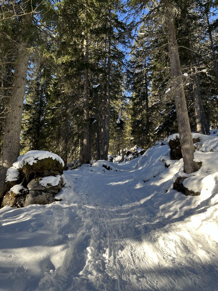 Auf die Abfahrt übers Chlys Lobhore haben wir verzichtet und sind entlang dem Fuss von Spaltenhorn, weiter via Flöschwald und Schlittelbahn abgestiegen. Die Schlittelbahn oberhalb Isenfluh ist etwas vereist, jedoch mit den Skier machbar. Einige Steinkontakte auf dem Südhang des Chantbachtals.