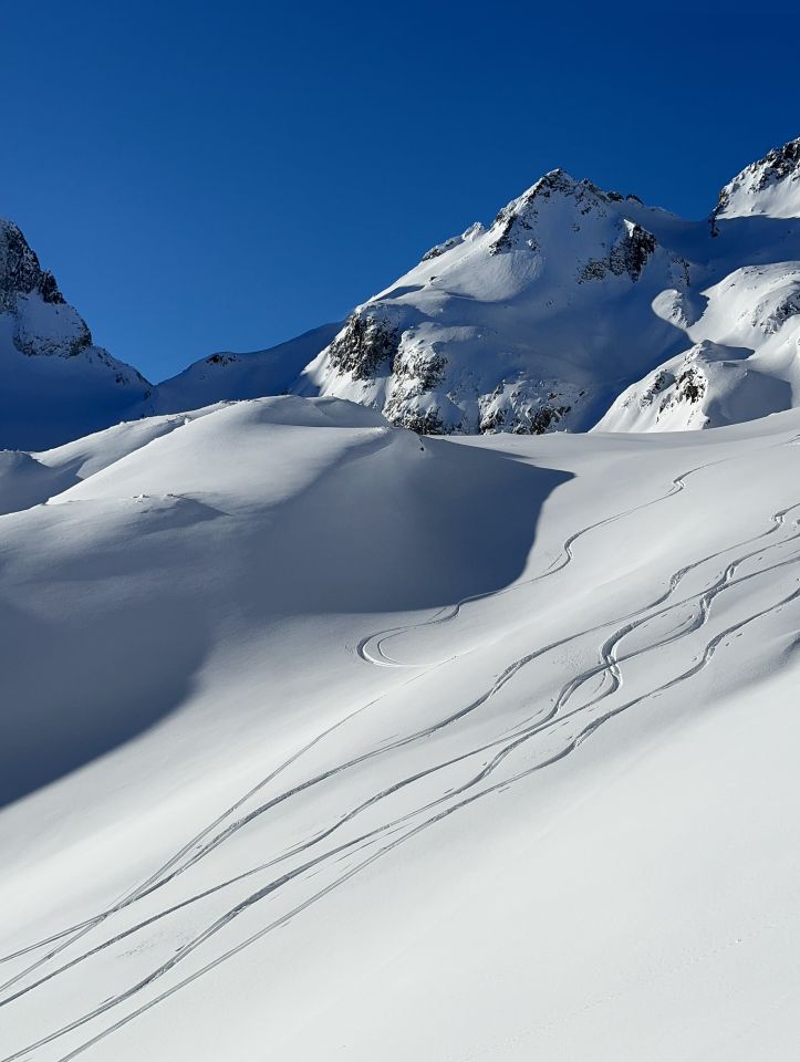 Schöner Pulver auf der ganzen Route, selbst die Straße von Realp weg gut zu fahren.