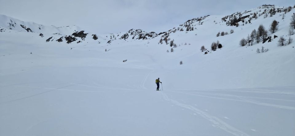Von der Bergstation der Gondel über den Schlittelweg hinauf, der hatte top Verhältnisse. Oberer Teil der Tour dann teils hart, teils gedeckelt, teils stark zerfahren, in den flacheren Mulden und Hängen noch schöner Pulverschnee. Besuch in Trächu Hittu empfehlenswert!