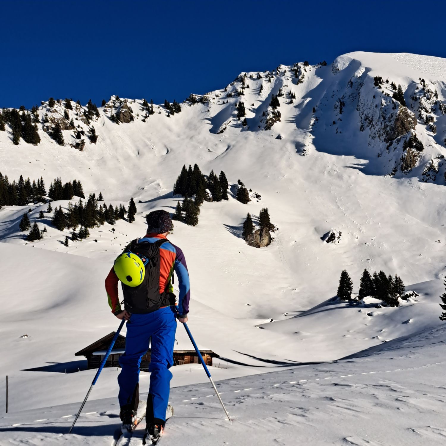 Unten raus brauchts ordeli Schnee,Normalroute gut eingefahren.