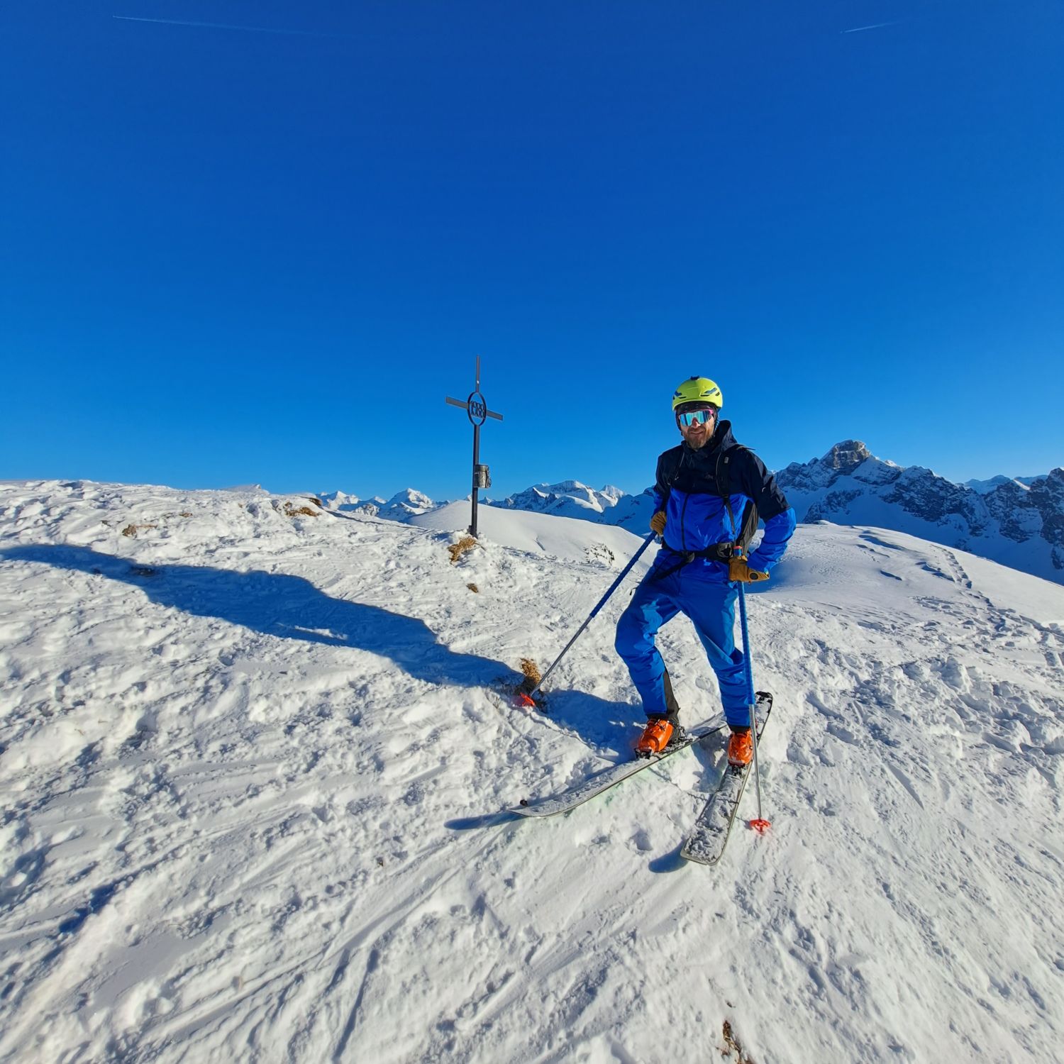 Start da späterer Nachmittag auf ca. 1200m. und über Vorder Cumi aufgestiegen für Blick in Culi.Restaufstieg Normalroute gute Spur bis Gipfel.