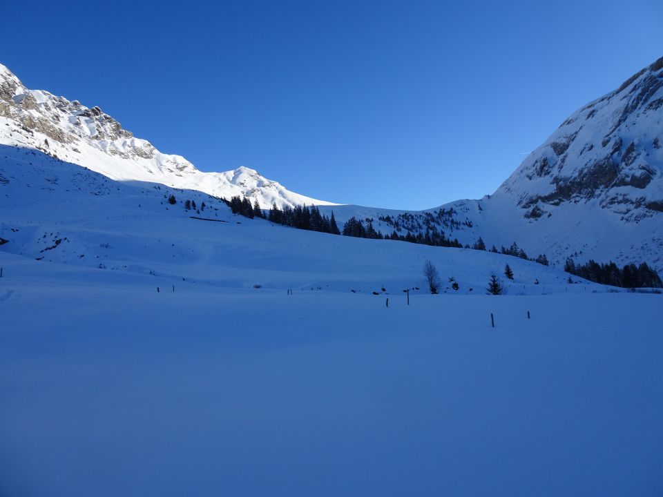 Pulver von oben bis unten, unterhalb der Seilbahnen etwas wenig Schnee (die Kuhtritte sind gerade zugedeckt), so fuhren wir dann ab ca 1300m die Strasse ab und nach der Waldgrenze direkt nach Fell.