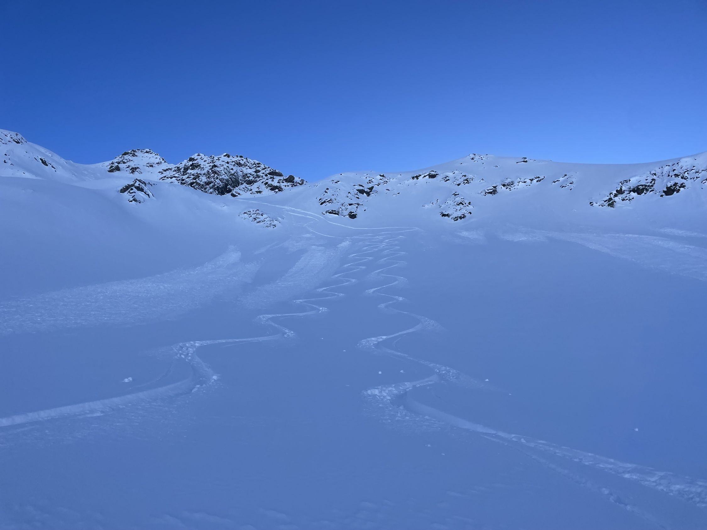 Bis auf die Abfahrt von der Ameisenscharte ins Eisental noch Pulver.