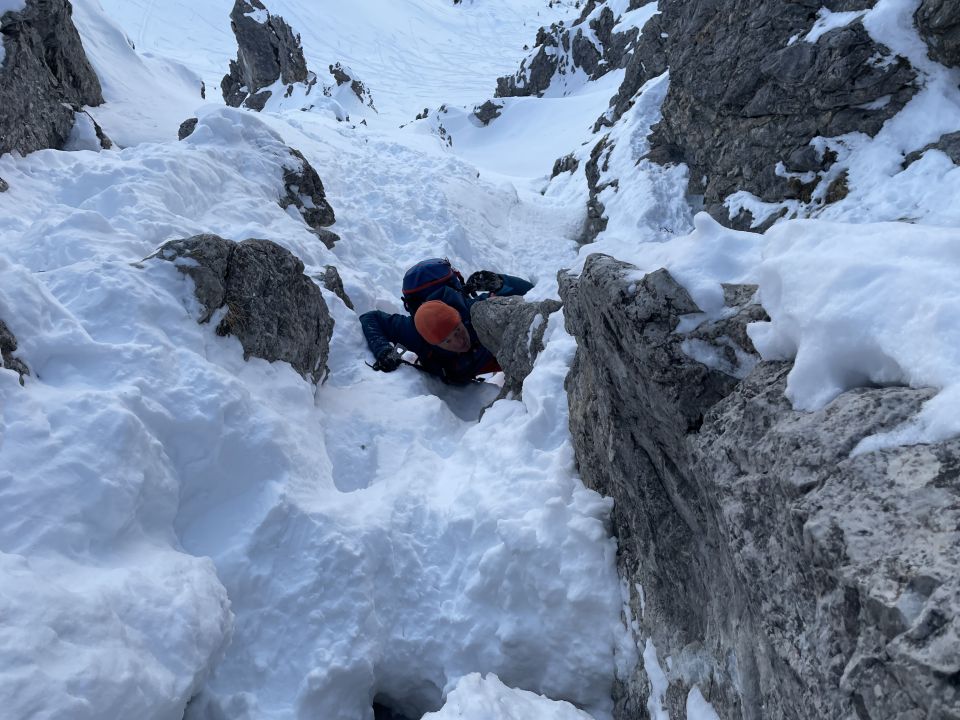 Für den Gipfelaufbau hatten wir Steigeisen und Pickel dabei.