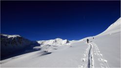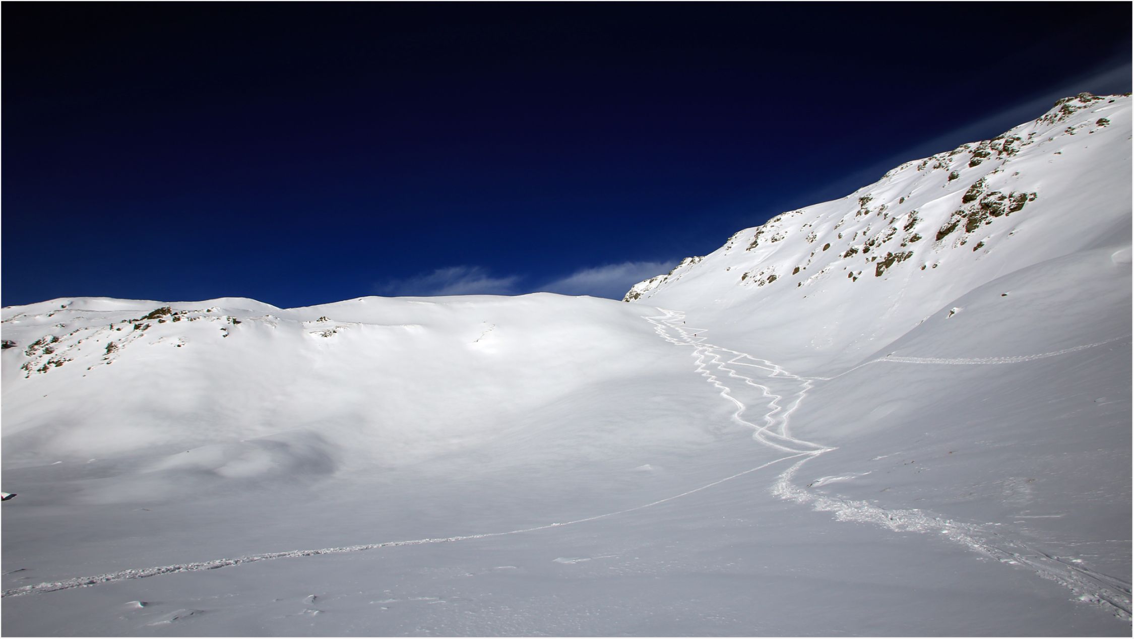Ca 20cm Neuschnee auf hin und wieder etwas ruppiger Unterlage.