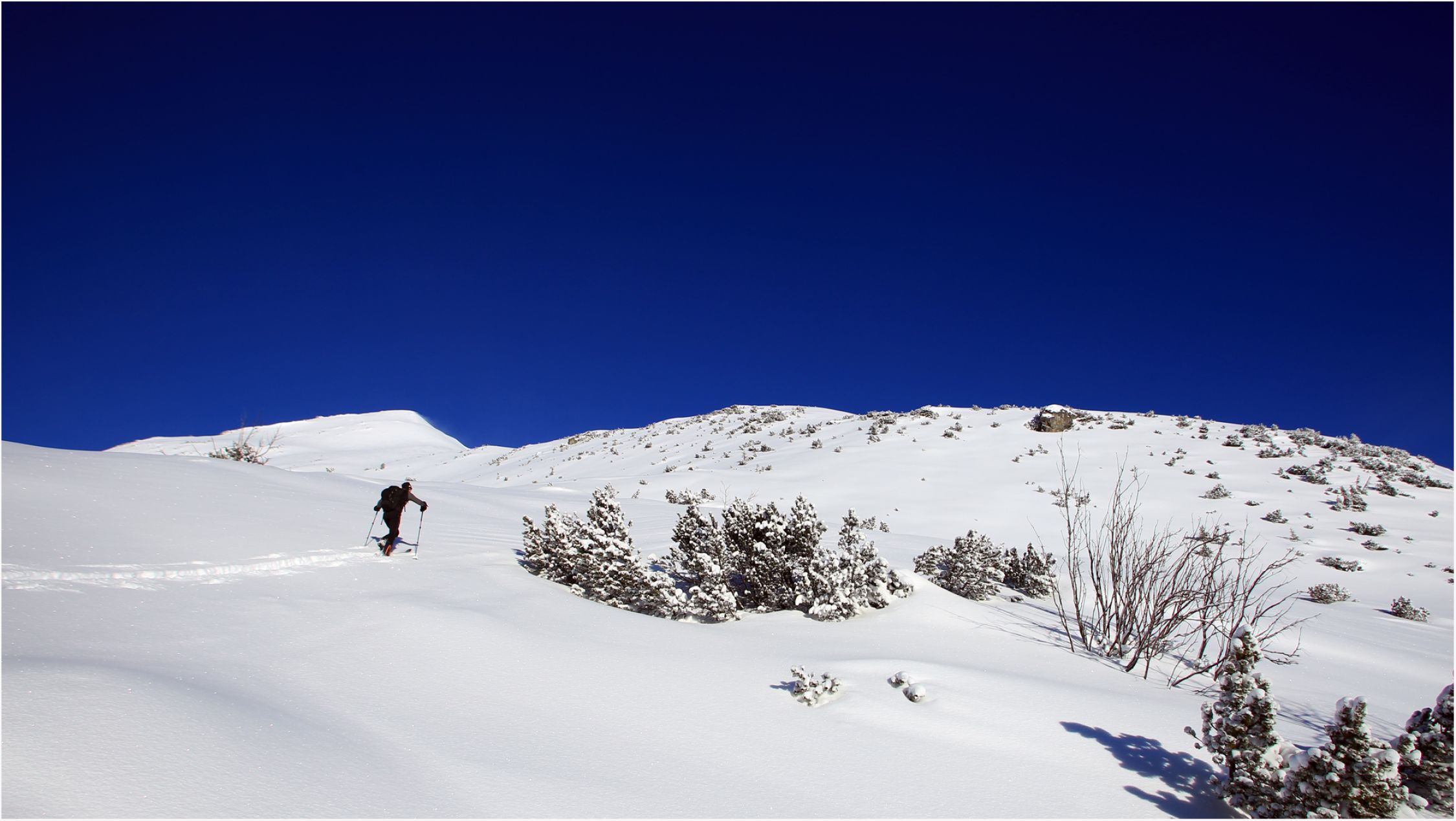 Achtung in Kammnähe viel Wind, der den Schnee mal wieder umparkt.