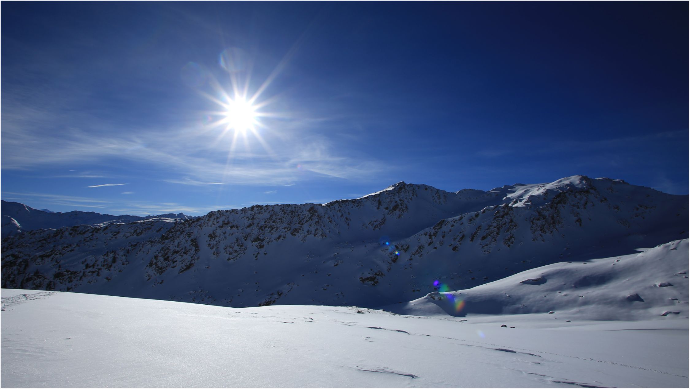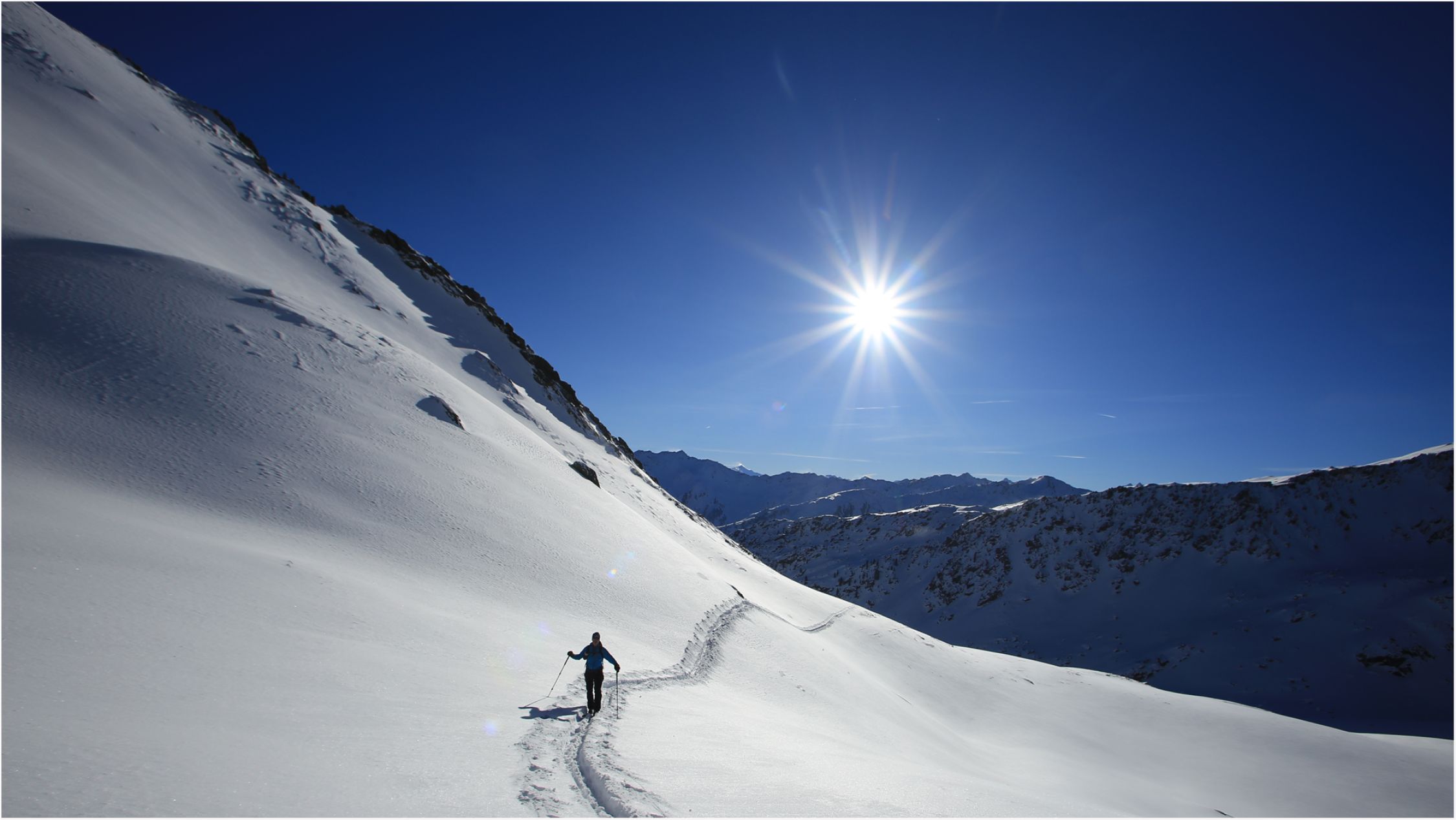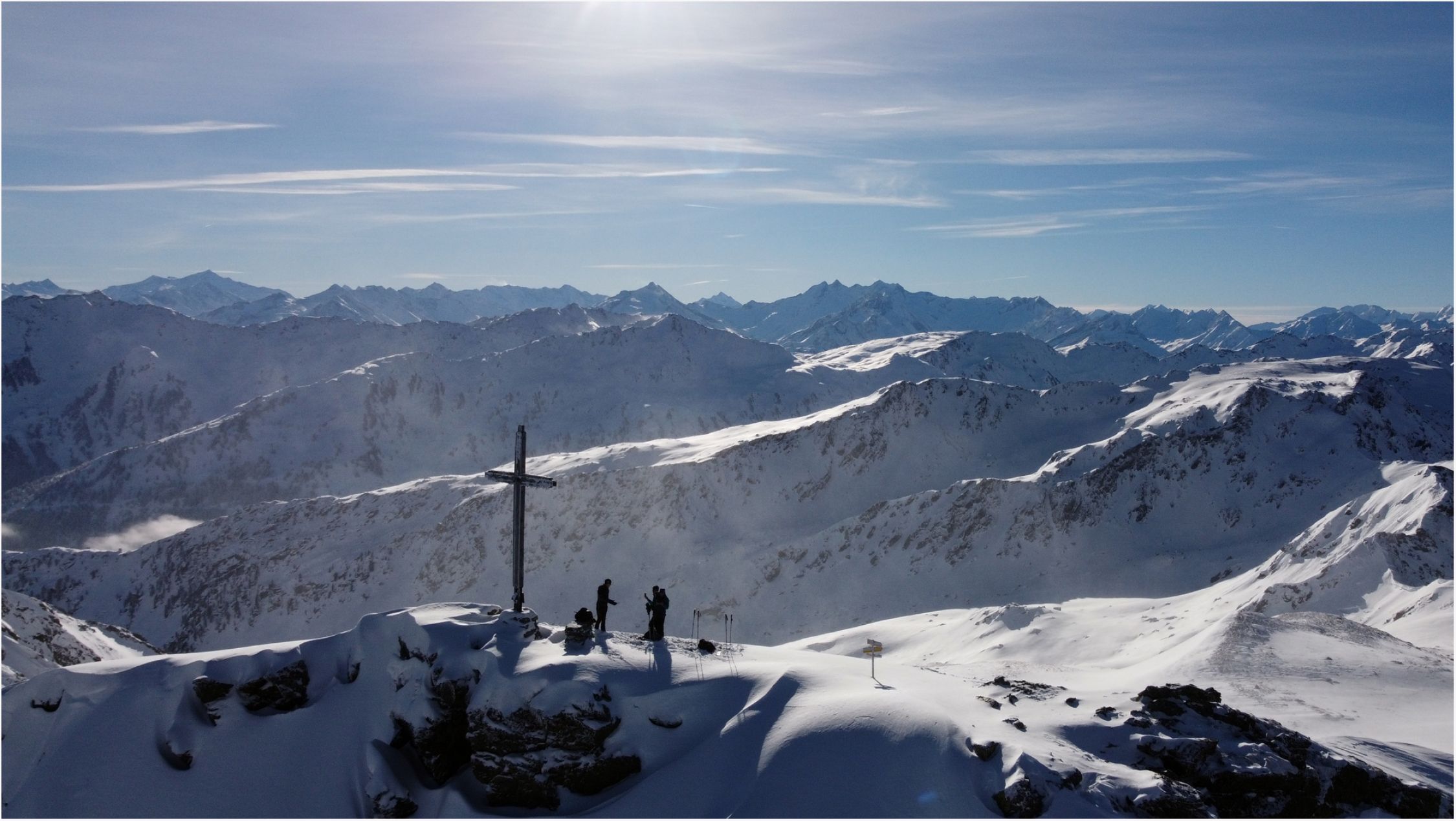 Blick in die Runde: In den westlcihen Kitzbühler Alpen liegt eigentlich genug Schnee. Etwas Zuwachs würde zwar nicht schaden aber es liegt auf alle Fälle deutlich mehr wie z. B. in den Chiemgauer Alpen.