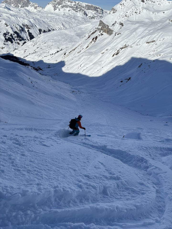 Abfahrt dann über tolle Pulverhänge bis zum Talboden und bis zum P Litzirüti war es super zu fahren.
