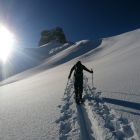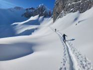 Alles gut eingeschneit, von Tschingel weg ca. 10cm Neuschnee, nach oben hin immer mehr werdend auf harter Unterlage. Der Schnee war richtig fluffig, nicht gebunden. Ausser ein paar kleineren Lockerschneelawinen in extrem steilen Hängen keine Lawinenabgänge gesehen. Vom Sattel weg bis Höhe Schafberg perfekter Puder, danach immer noch sehr gut, aber man spürte ab und an die harte Unterlage. Verhältnismässig wenig Windzeichen. Wenig Leute Richtung Bundstock unterwegs, viele sind zum Christihubel abgebogen. Die Abfahrt über Bäretritt wurde auch gemacht.