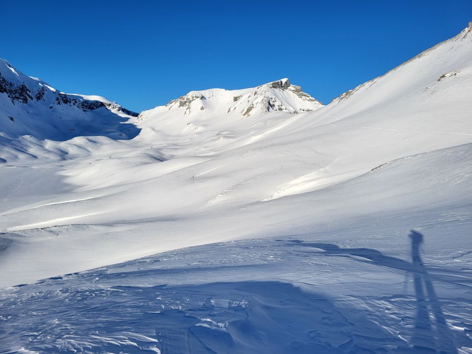 Geplant war eine Auffahrt bis Foppa. Die Bahn ist allerdings kurz ausgefallen. Alle Wartenden wurden zur Bahn nebenan geschickt. Aufstieg also ab Alp Plaun über Nagens und weiter bis zur Bergstation über der Hütte. Kurze Abfahrt in die Schwemmebene. Aufstieg zur Plaun Segnas-Sura und ewig lang zum Sardonapass und zum P2997. Den Hauptgipfel habe ich zeitbedingt ausgelassen. Super steile Abfahrt über den SW-Hang runter und querend zu P2323. Über die Südhänge runter zur Piste.