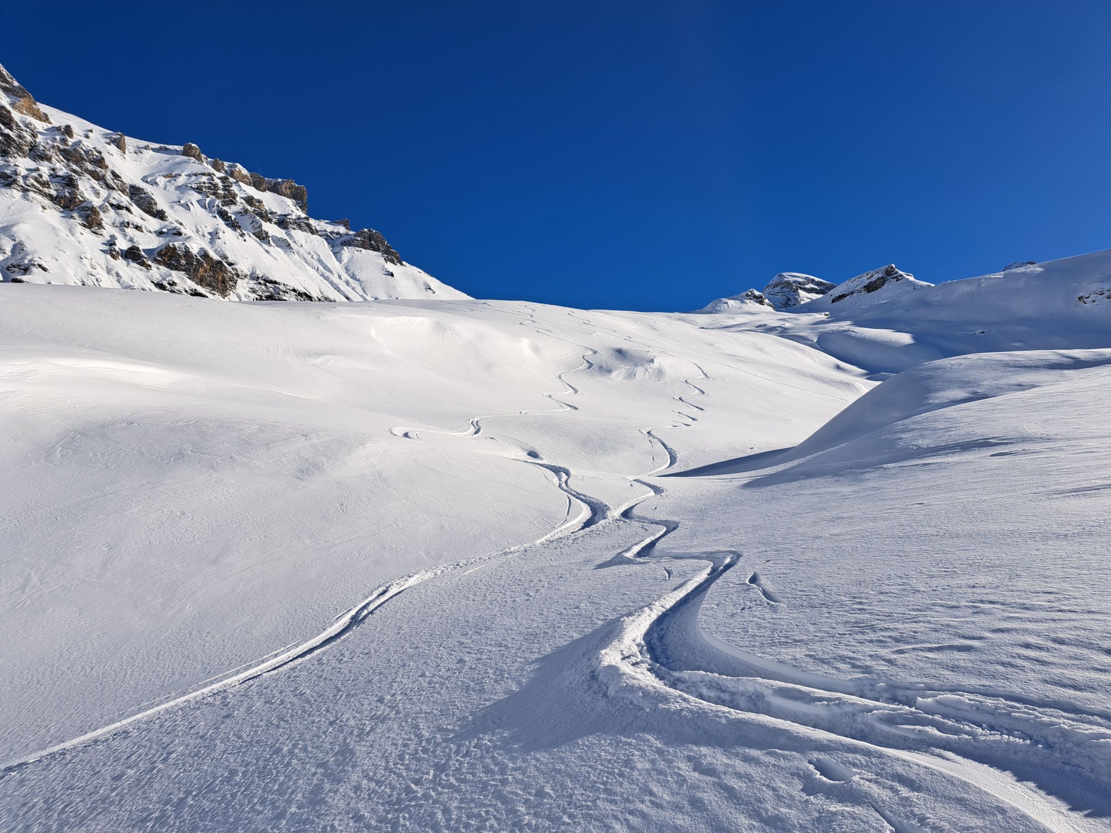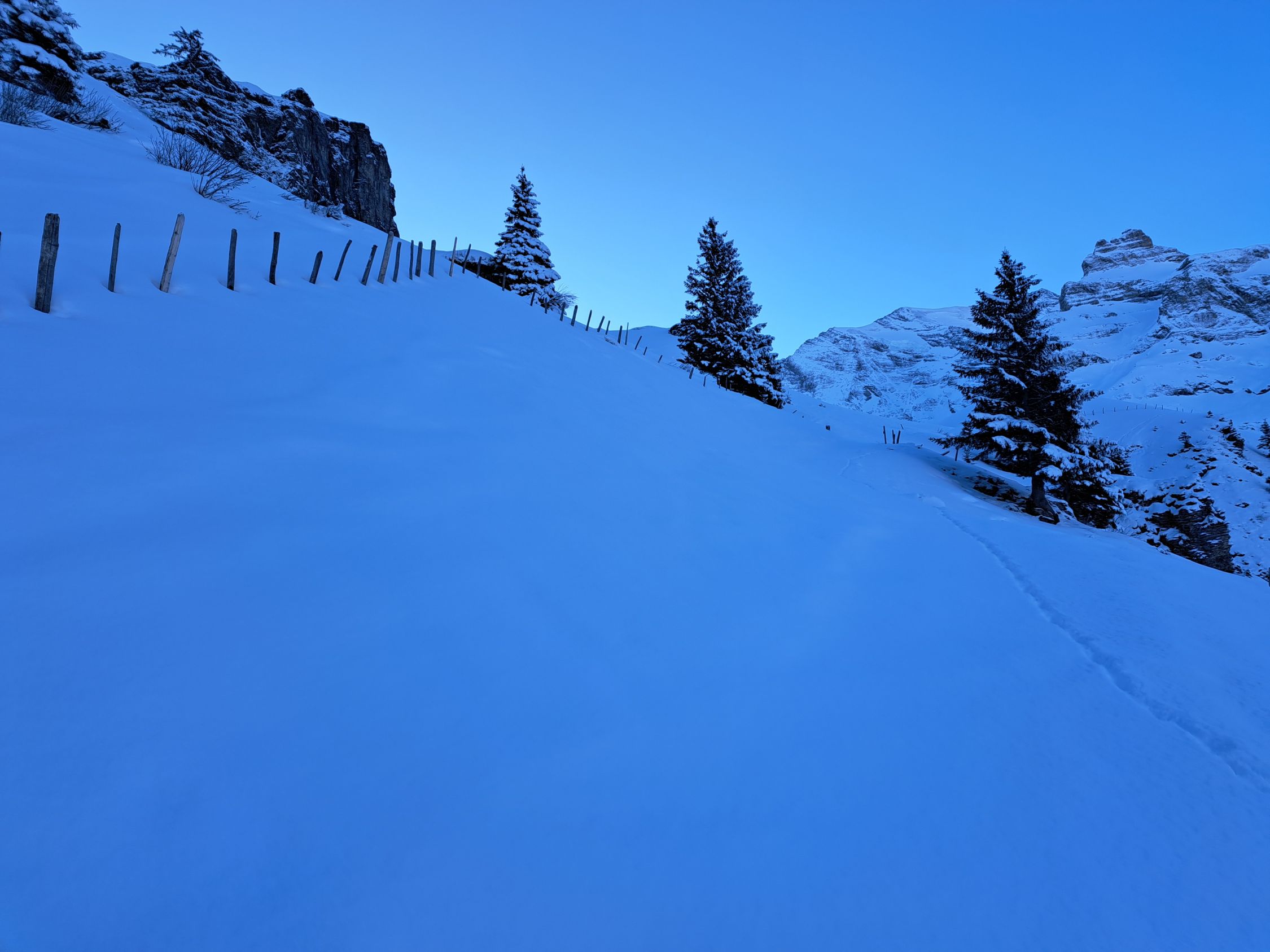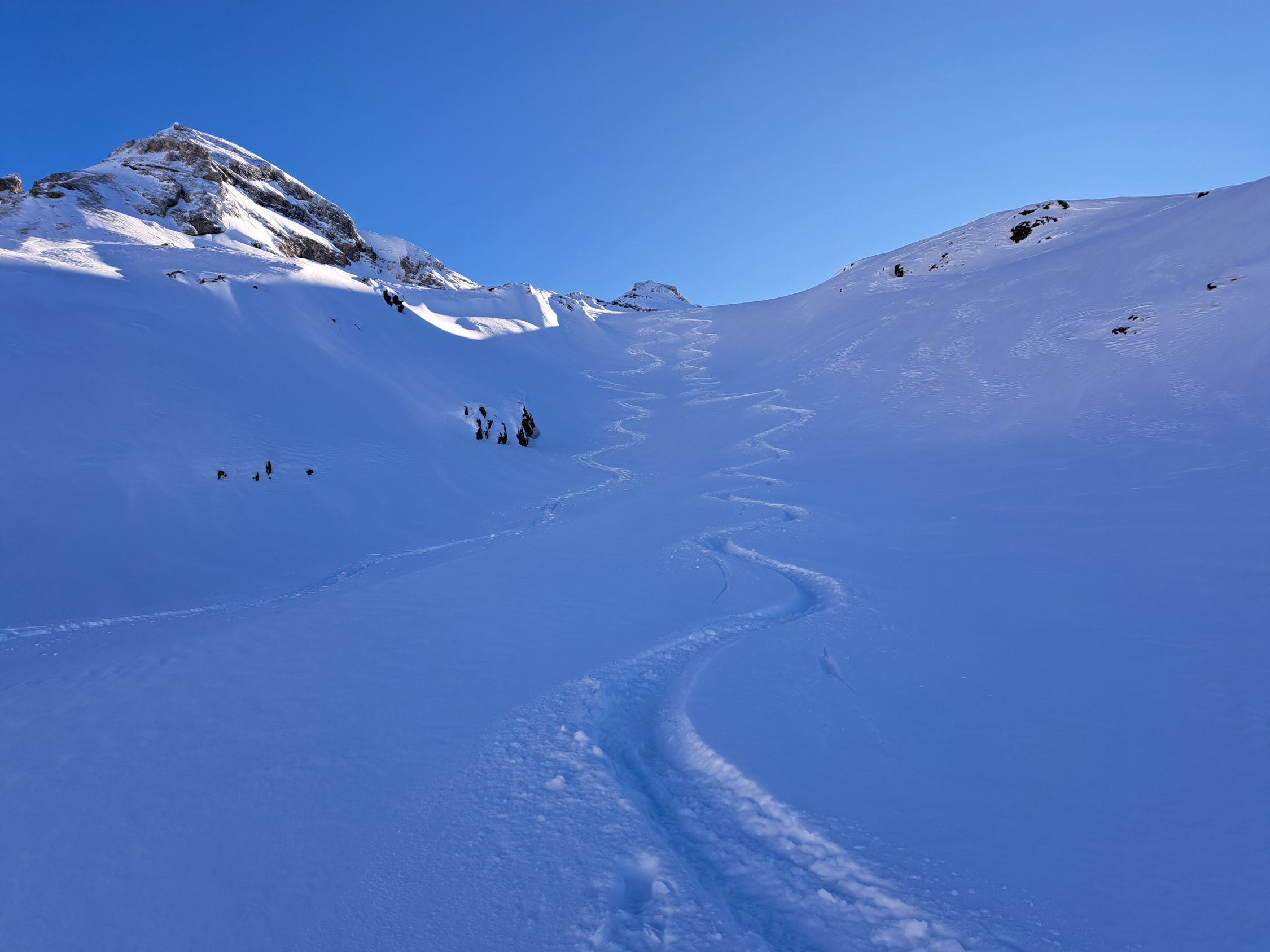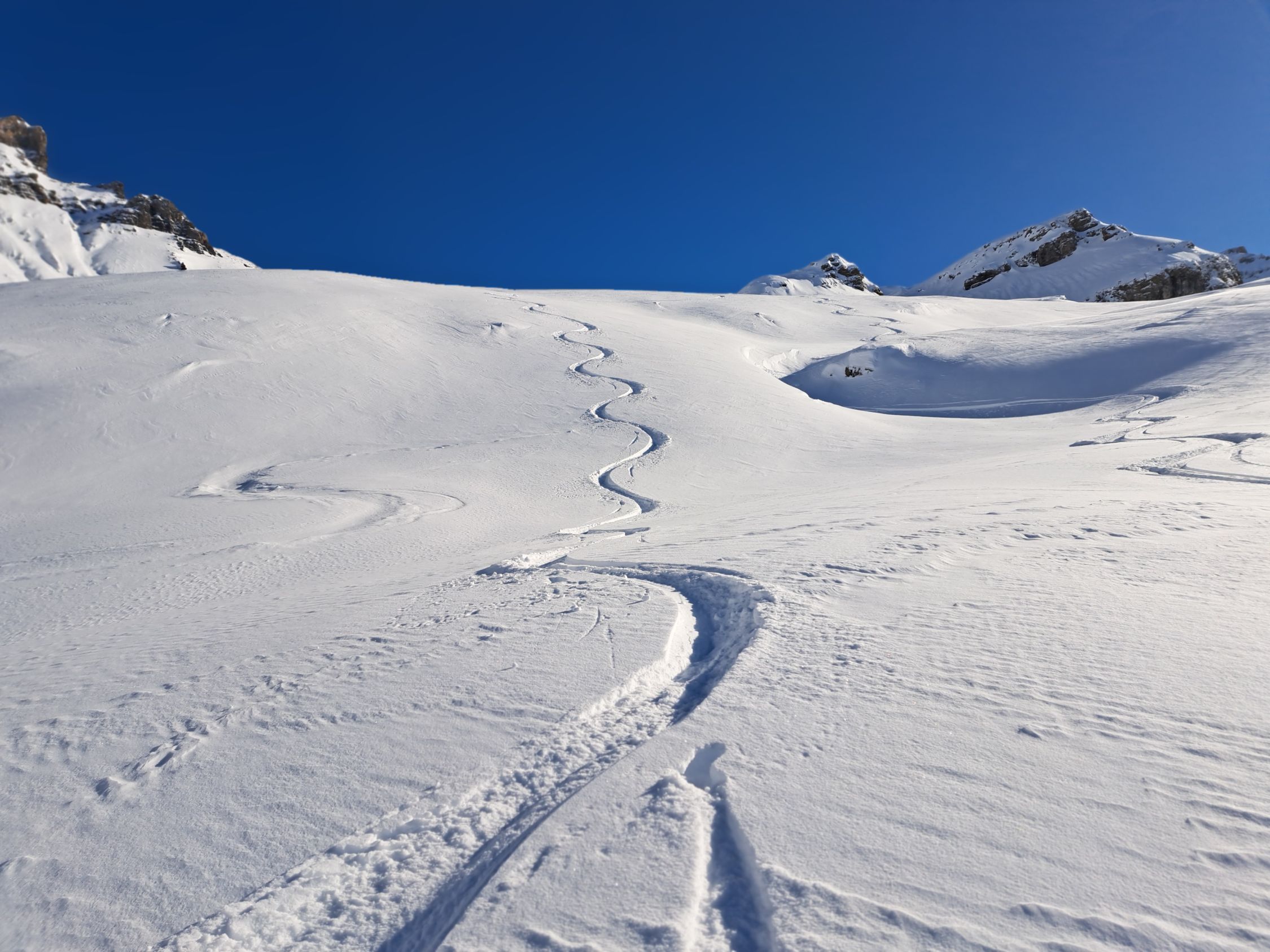 Überall 10-20cm pulverschnee auf harter Unterlage