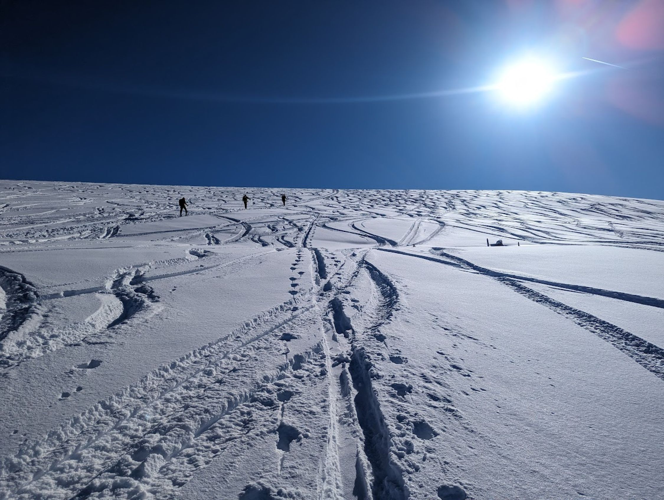 Sehr gute Verhältnisse am WE mit Neuschnee und nur sehr wenigen offenen Stellen bei der Abfahrt. Auch Meniggrat und hoch zum Grat neben dem Chalberhori ging bei besten Verhältnissen. Wiriehorn ging allerdings nicht wegen zu wenig Schnee im unteren Bereich (auch zu diesen Touren sind Bilder enthalten)