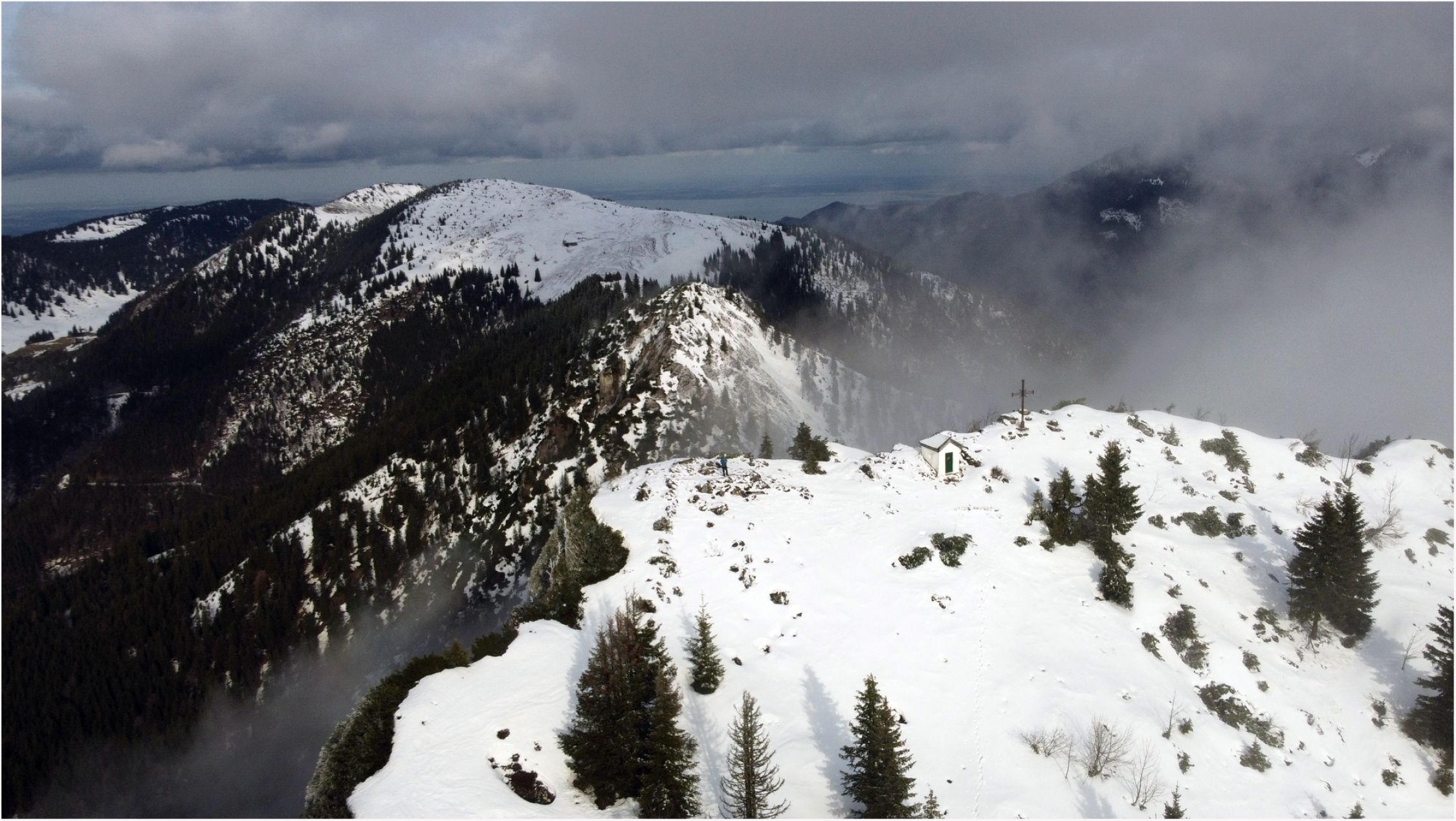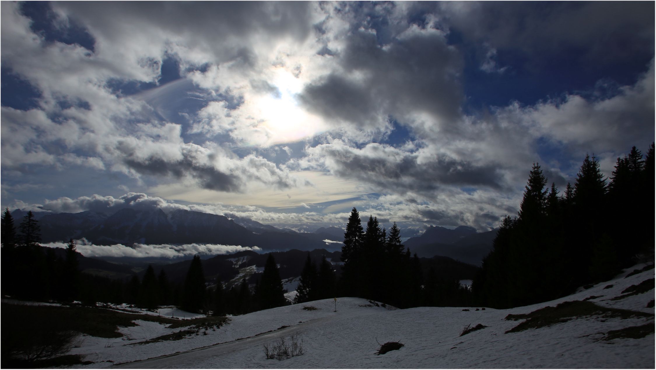 Schönes Wolkenspiel unterwegs und auf dem Gipfel. Nieman unterwegs, so gesehen ein schöner Nachmittagsspaziergang.