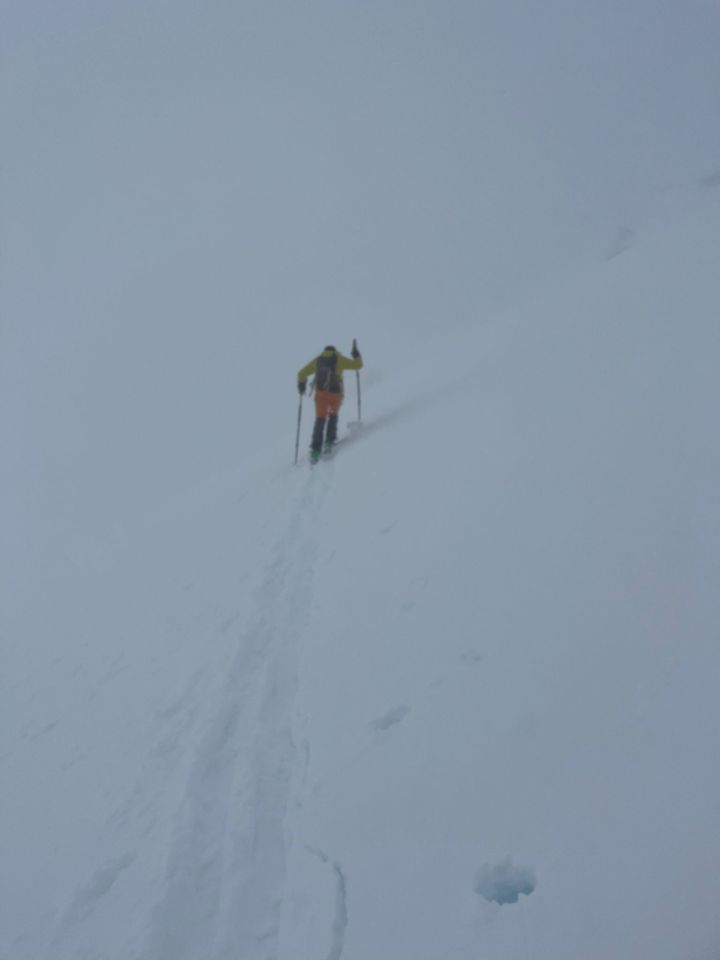 Bei Kaffee entschieden ob es zum Lukmanier oder Juf geht. Lukmanier war vom Wetter die bessere Wahl. Bis 2200m im Nasschnee aufgestiegen, dann bis 2600m auf harter Kruste und bis Skidepot auf lockeren Schnee, der immer wieder abrutschte. Gipfel mit Steigeisen bestiegen. Die Abfahrt bot alles von Pulver über Bruchharsch bis zu Nasschnee. Sicht teilweise White Out teilweise bis Monte Rosa. Aus den heutigen Bedingungen das allerbeste gemacht.