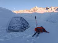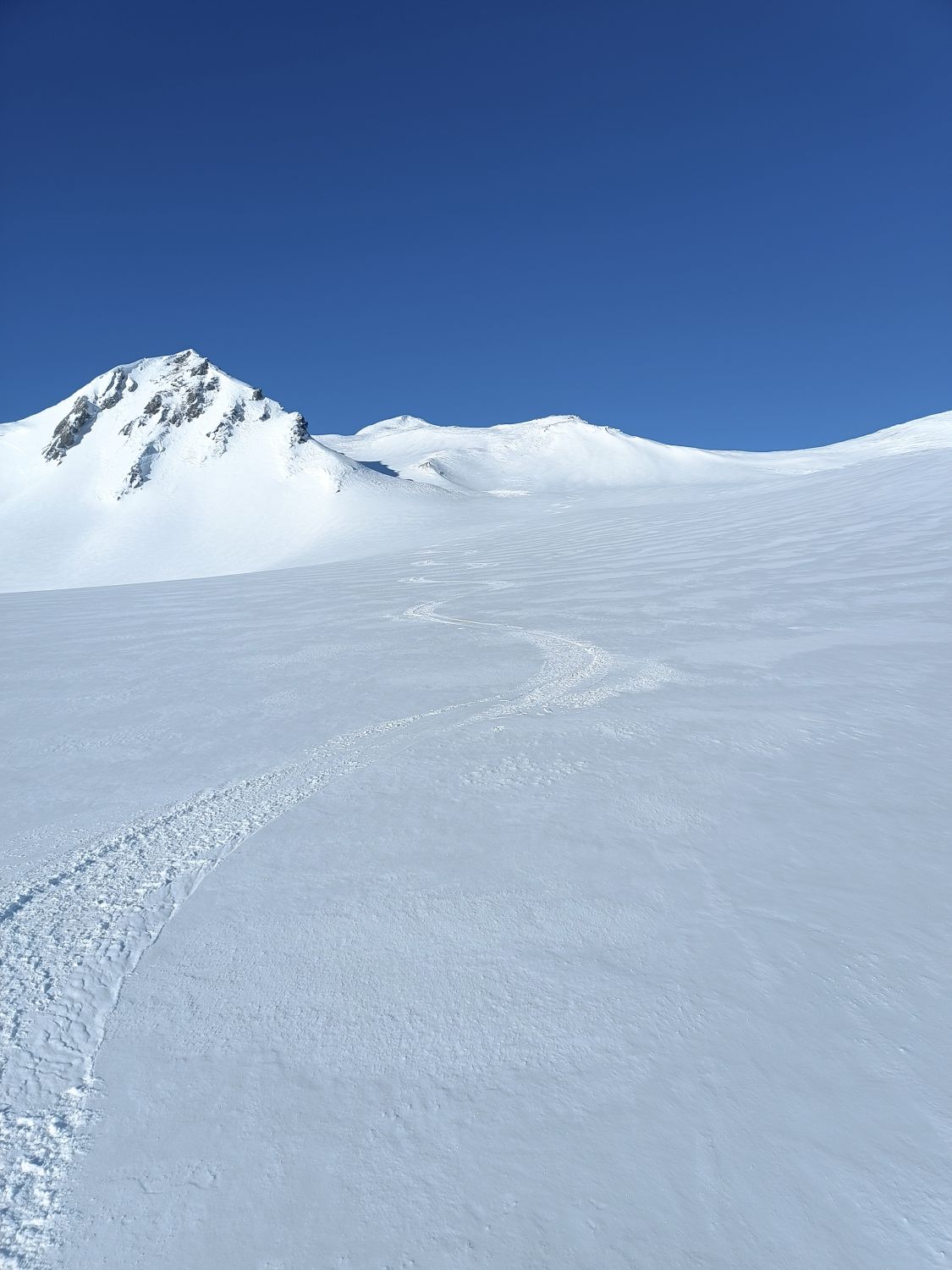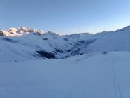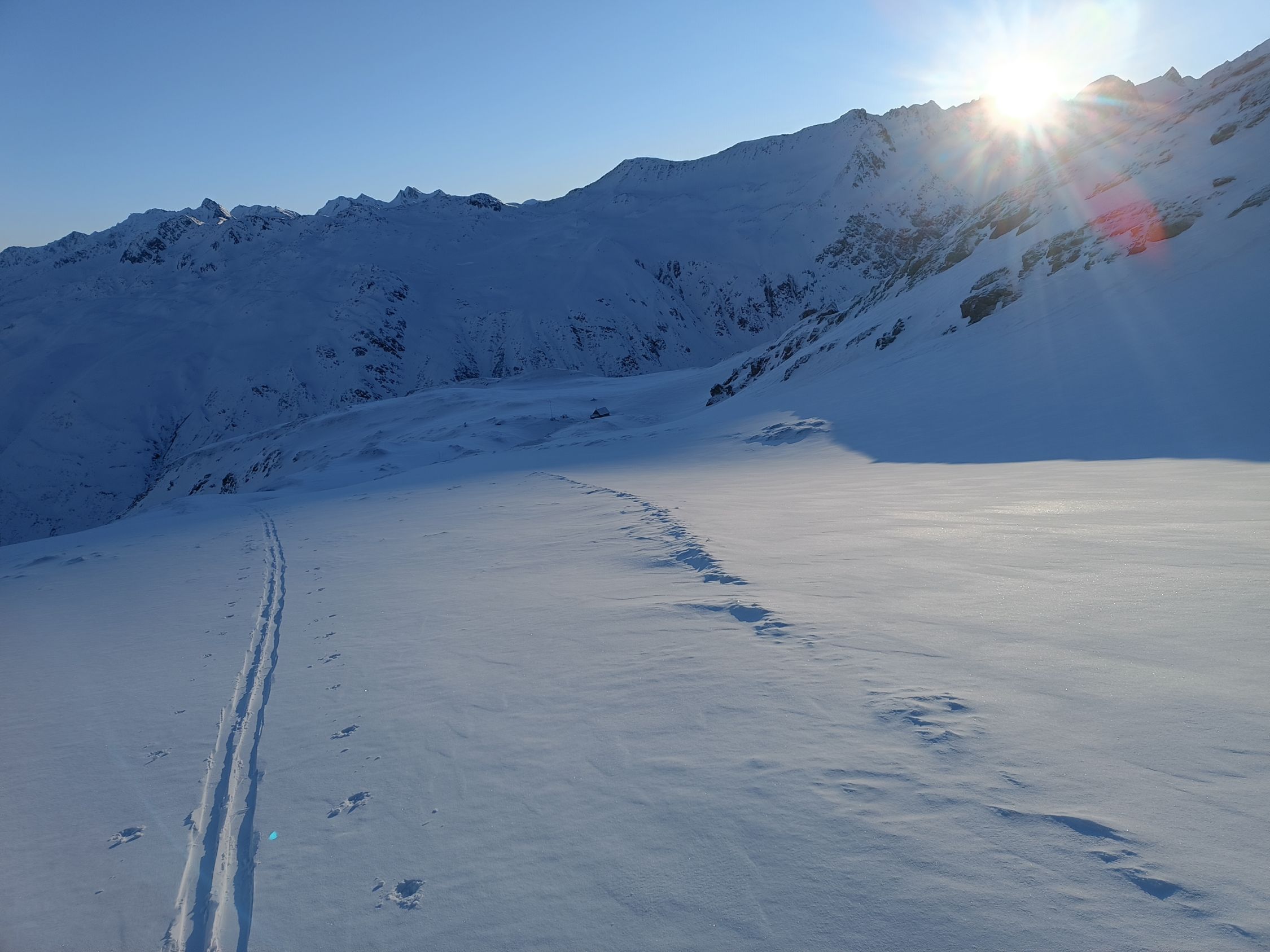 vom Wind und den vielen Tourengänger gezeichnet.Nur etwa 2cm Neuschnee und verblasen.Ansonsten gute Verhältnisse.