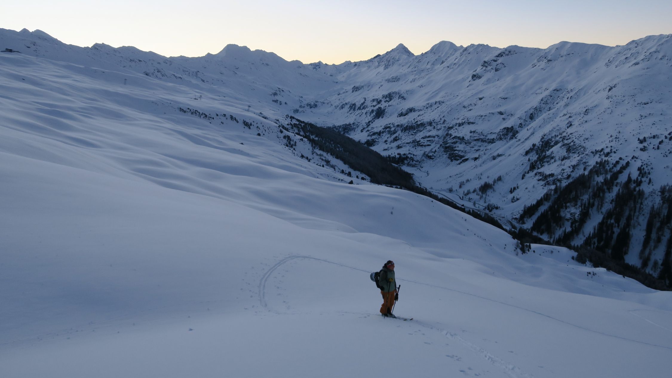 Von Innerbedra aufs Hüreli und über die Pischa Bergstation zurück ins Tal. Es hatte ca. 10 cm Pulverauflage und der Himmel war wolkenlos.