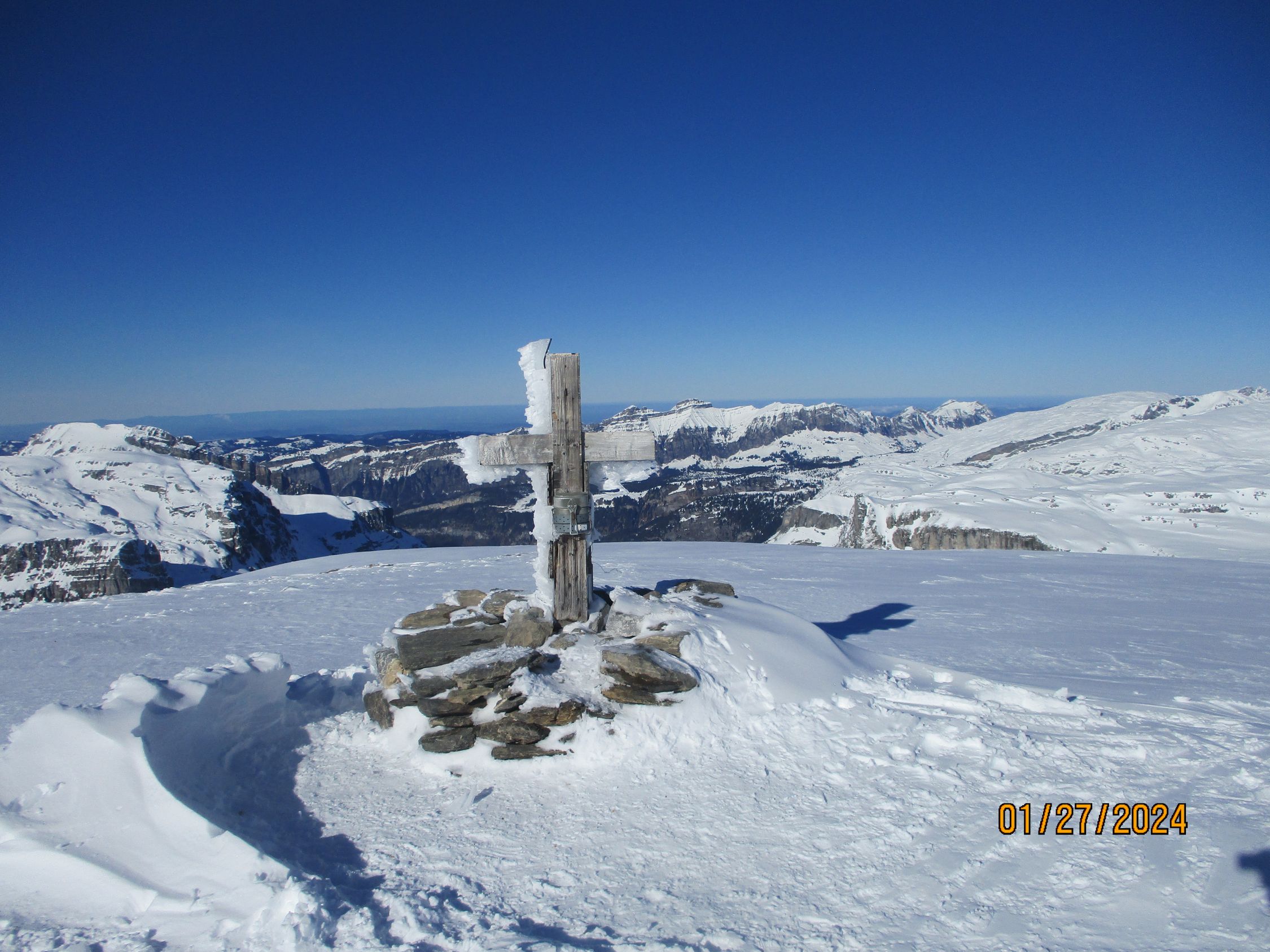 Schnee: unten griffig-eisig,auch noch am Nachmittag. Ab ca. 1900 m gut 10 cm Pulver auf harter Altschneedecke - im Abstieg mit Schneeschuhen arg rutschig, für Skifahrer aber erfreulich.