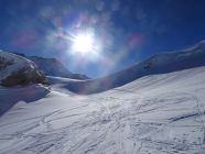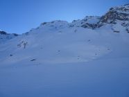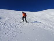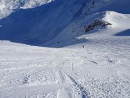 Schnee: harte griffige(aber nicht eisige) Unterlage mit 5-10cm Pulverauflage, kein Durchbrechen, teilweise(im unteren Teil) spürte man etwas Regenrinnen welche aber nicht weiter störten
