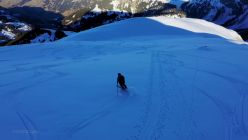 Lawinensituation: Keine frischen Alarmzeichen (Abgänge, Wummgeräusche etc.) wahrgenommen. Einige zum Teil mächtige Gleitschneeabgänge im Gebiet in allen Expositionen und in Höhenlagen bis ca. 2900m
