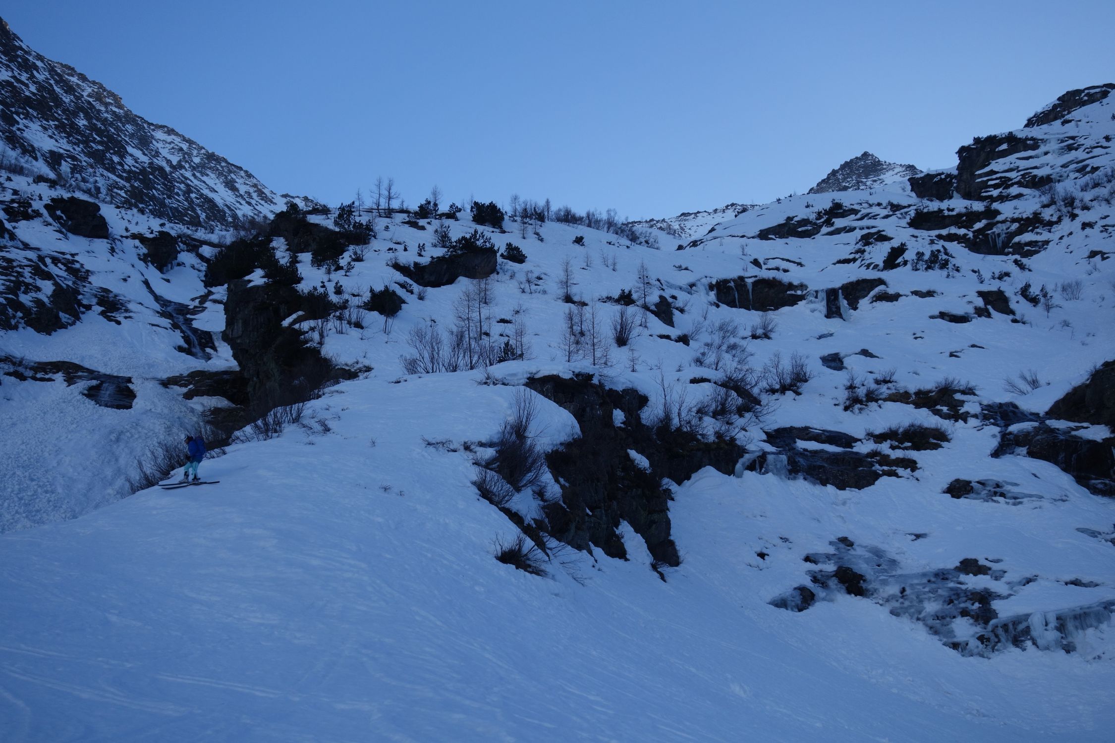 Im Tal: harte gefrorene Kruste auf Nassschnee;