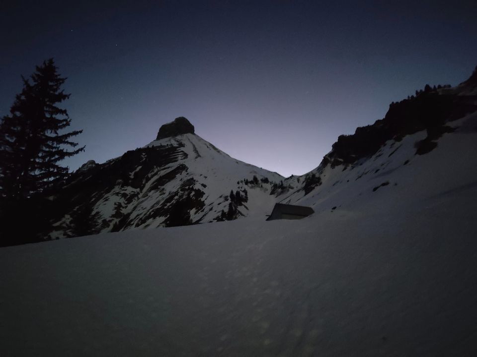 Eigentlich als Schneeschuhtour geplant, kam es etwas anders. Ab Alp Zindlen waren heute zwingend Steigeisen nötig. Es ist alles sehr hart und tragend. Die Wärme und der Regen in der vergangenen Woche, haben alles verpresst und viele Hänge haben sich entladen. Der Gipfelübergang ist noch mit erstaunlich viel Schnee bestückt, welcher eine Mischung aus Deckel und Faul war, so dass ich die letzten Meter nicht begangen habe.