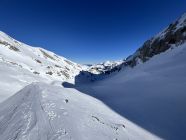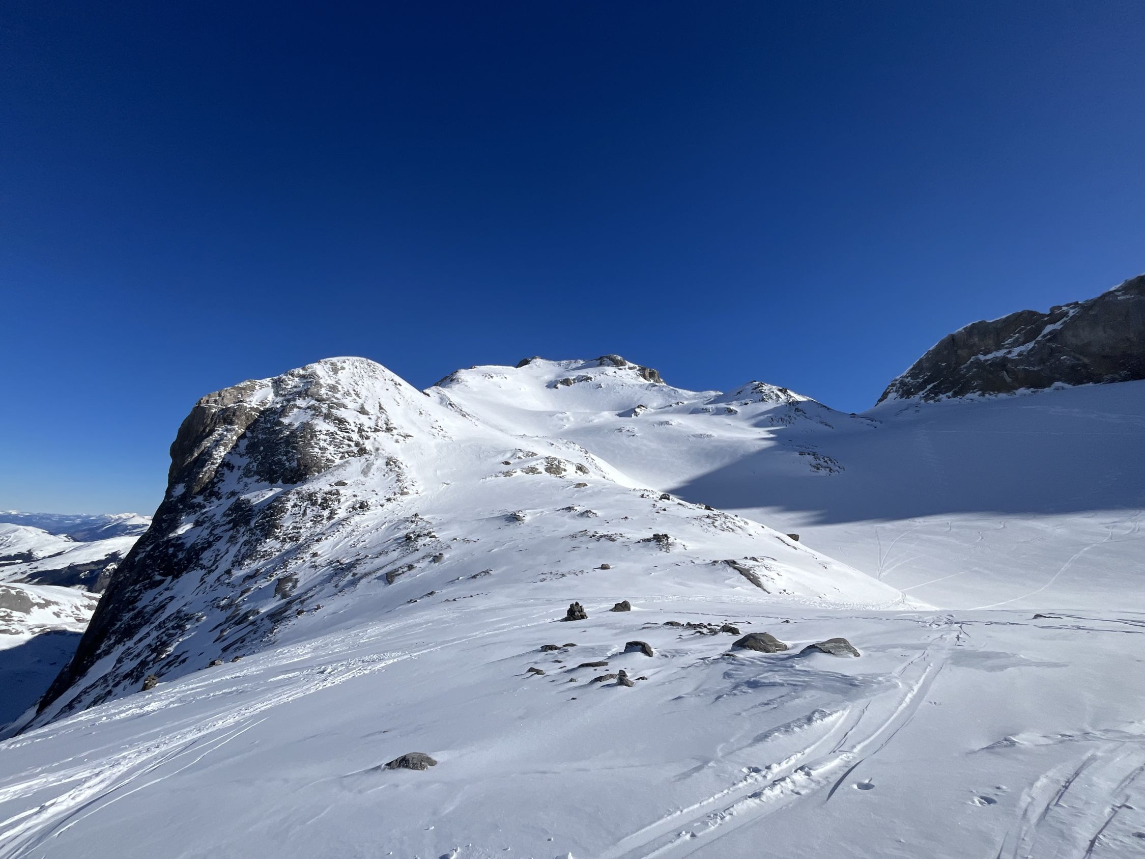Ab Hohberg ca. 2cm Pulverschnee und darunter eine gut tragende Schneeschicht. Das Iffighorn haben wir erreicht. Abfahrt Richtung Wildhornhütte. (Gleitschneelawine ist am Südhang bereits unten.)