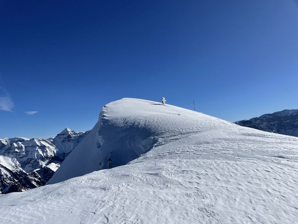 Gipfelgrat mit Steigeisen gemacht, 2 Tourengänger haben die Variante mit Skis bis auf den Gipfel gemacht. Imposante Tour in schönster Umgebung.