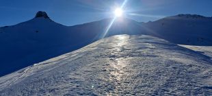 Geschlossene Schneedecke erst ab 1400m. Sehr harter Schnee firnt such im Tagesverlauf nich auf.