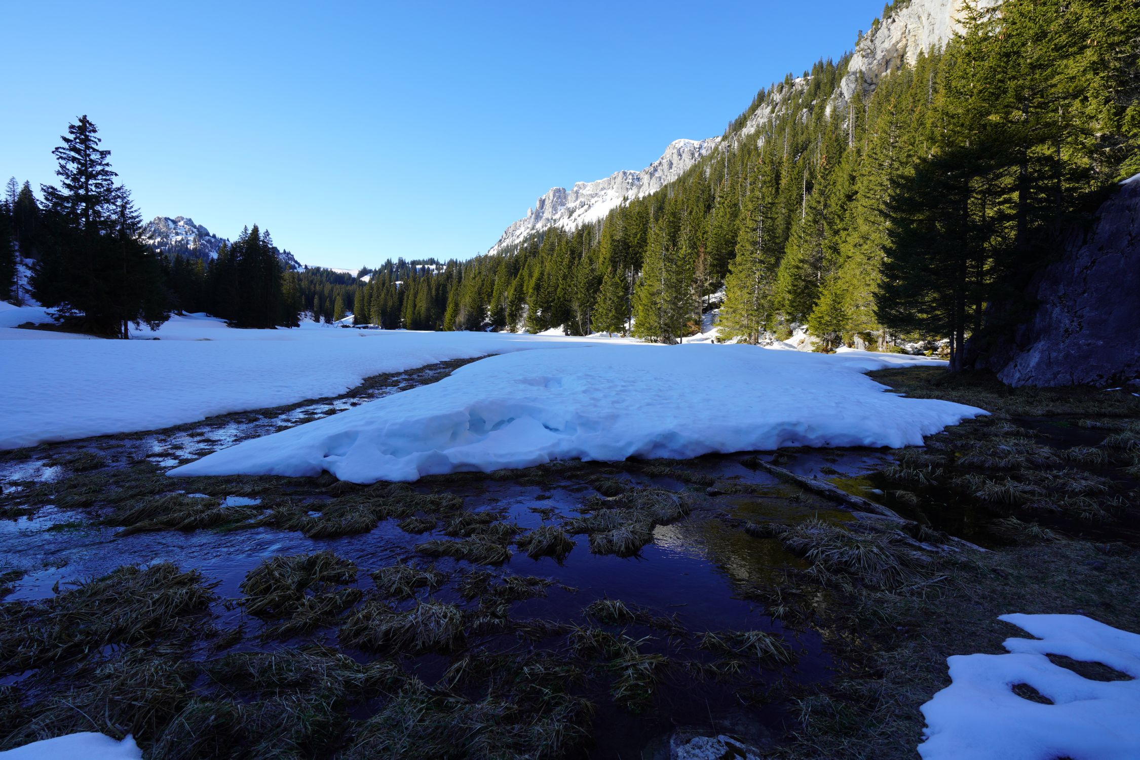 Bleibt bis zum nächsten Wetterwechsel ähnlich. Die aperen Stelle in der Alpstrasse werden wohl rasch grösser. Es muss mit kurzen Tragstellen gerechnet werden.