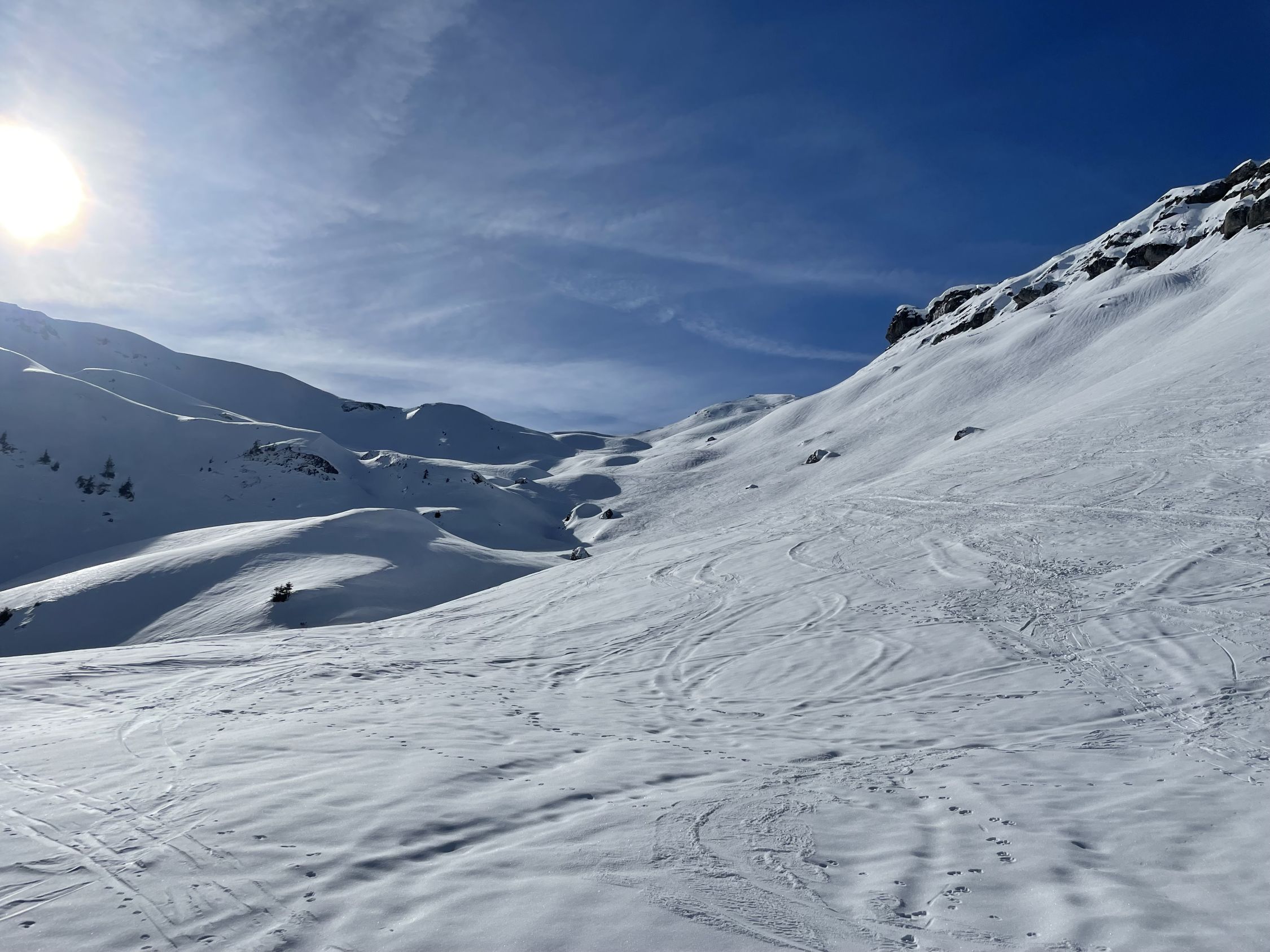 Seit vielen Jahren wieder mal hier, und die Fahrt mit der Kult-Seilbahn Spilau war der erste Höhepunkt. Von der Bergstation schöner Aufstieg zum Hagelstock. Schnee hart und ab dem See mit einer dünnen Schneeauflage. Angenehm zum Aufsteigen, ganz oben ein bisschen blankgeweht und eisig. Dann sofort unangenehm für mein leider reduziertes Können. Schöne Pause oben bei angenehmen Temperaturen und bestem Wetter. Abfahrt gut bis sehr gut, solange Neuschnee, dann bis zur Bergsation hart. Die Talabfahrt ist derzeit nicht zu empfehlen, soweit ich informiert bin.