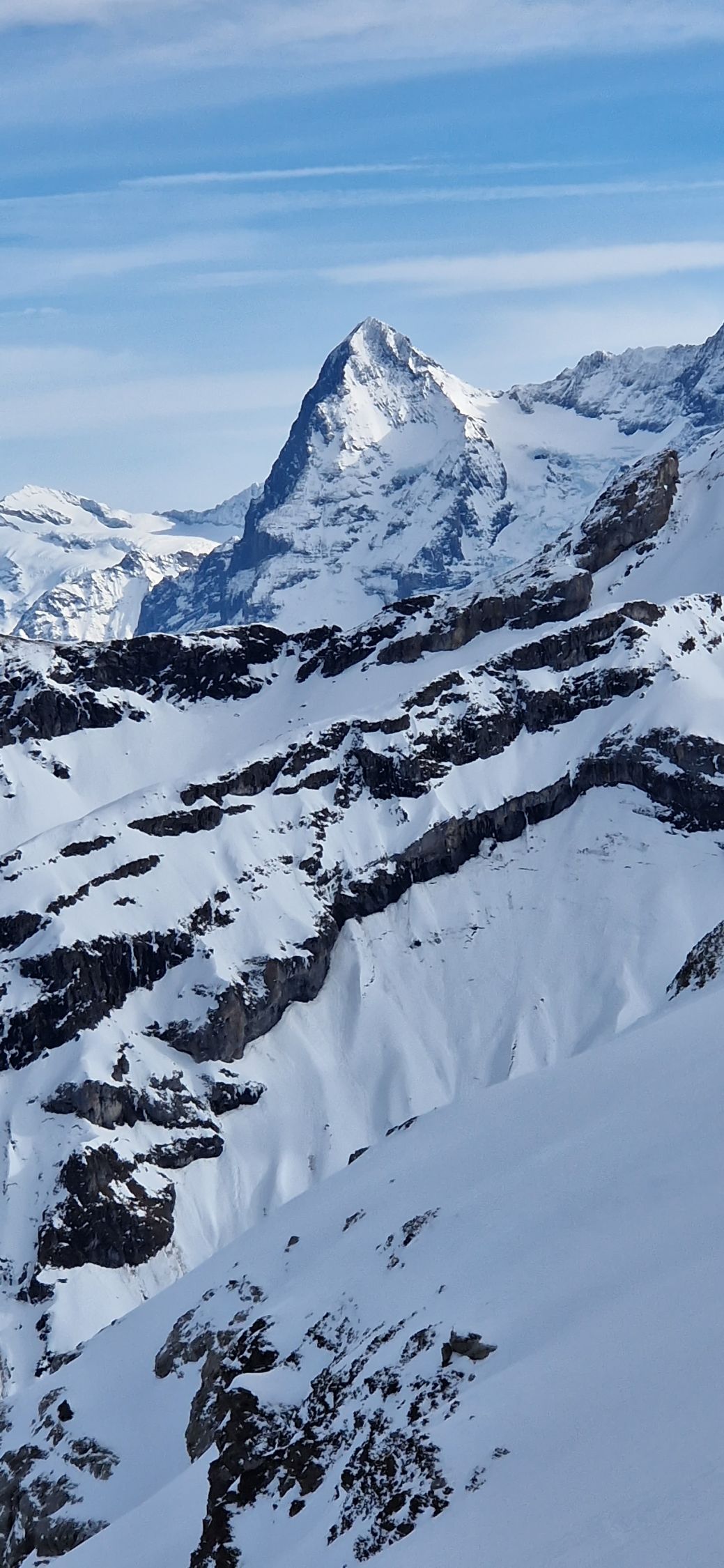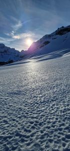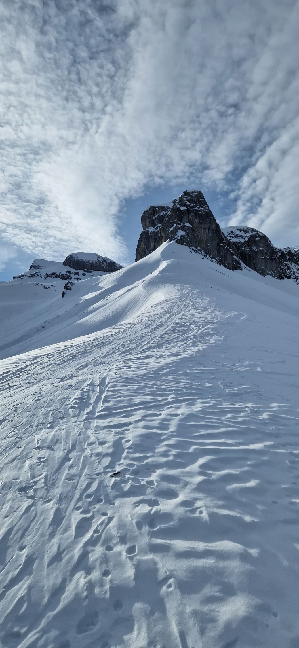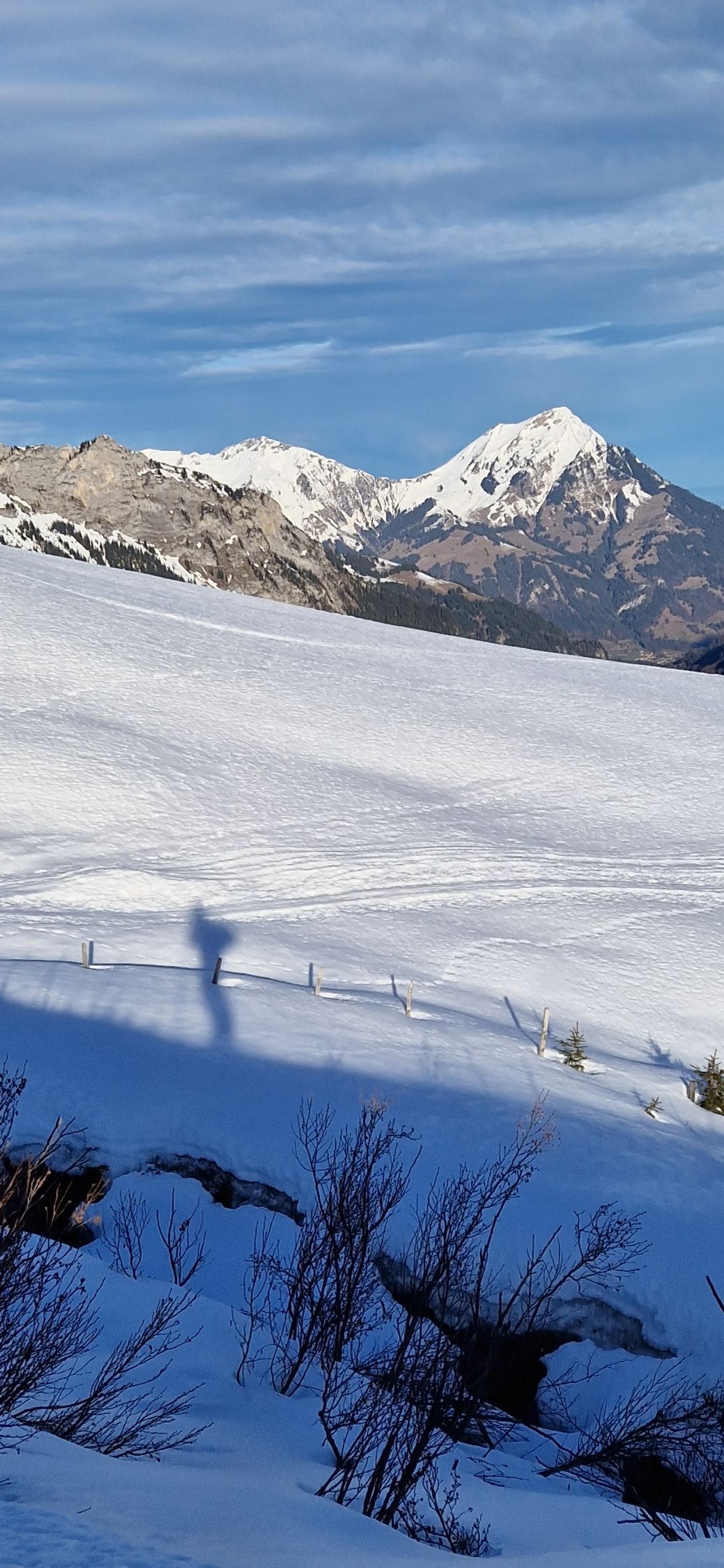 Da immer noch Januar und nicht Mai ist, werden die wunderschönen, südseitigen Hänge nur langsam von den Sonnenstrahlen gekocht zudem waren noch fiese Schleierwolken unterwegs. Idealer Zeitpunkt für eine Sulzabfahrt ist vermutlich gegen 14 Uhr bei voller Einstrahlung.