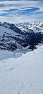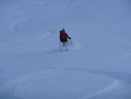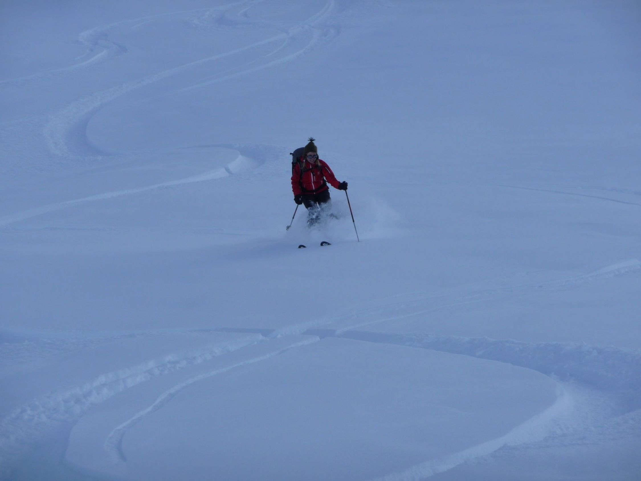 Wählt man die direkte Abfahrt vom Gipfel hats noch schönen Pulver.