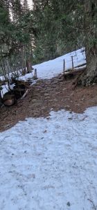 Die Schneedecke ist gefroren aber sehr gut ohne Harscheisen begehbar, weiter oben ab Höhe Bäretritt hats ein Pülverchen.
