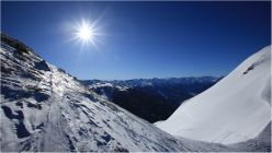 Allgemein liegt im Gebiet wenig Schnee, exponierte Stellen sind abgeweht.