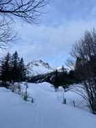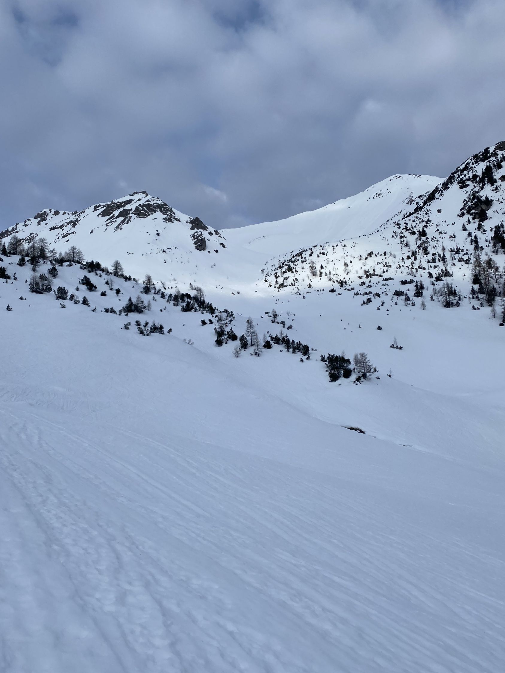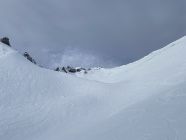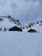 Bis über die Obere Brüggelealm alles hart gefroren. Danach langsam Übergang zu windgepresseter Schneedecke - vorallem die Nordostausgerichteten Hänge. Da gab es bei der Abfahrt noch einige schöne Schwünge mit Pulverschnee. Ab ca. 1800 m dann Abfahrt ruppig, da sich die Sonne zu wenig zeigte und die Lufttemperatur auch nichts zur Firnbildung beitrug.