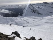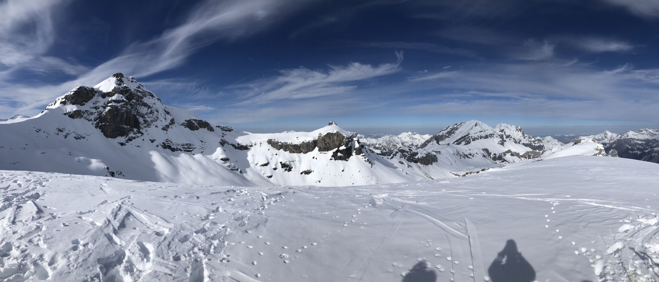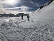Durchgehend gute Bedingungen ab 2300m.ü.M Pulver auf harter Unterlage. Am Gipfelhang Harscheisen empfohlen