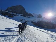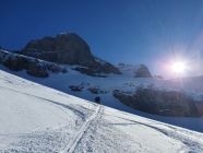 Erstaunlich gute Verhältnisse, recht gut eingeschneit. Harter Untergrund, 3-5cm Pulver. Oben 7cm.