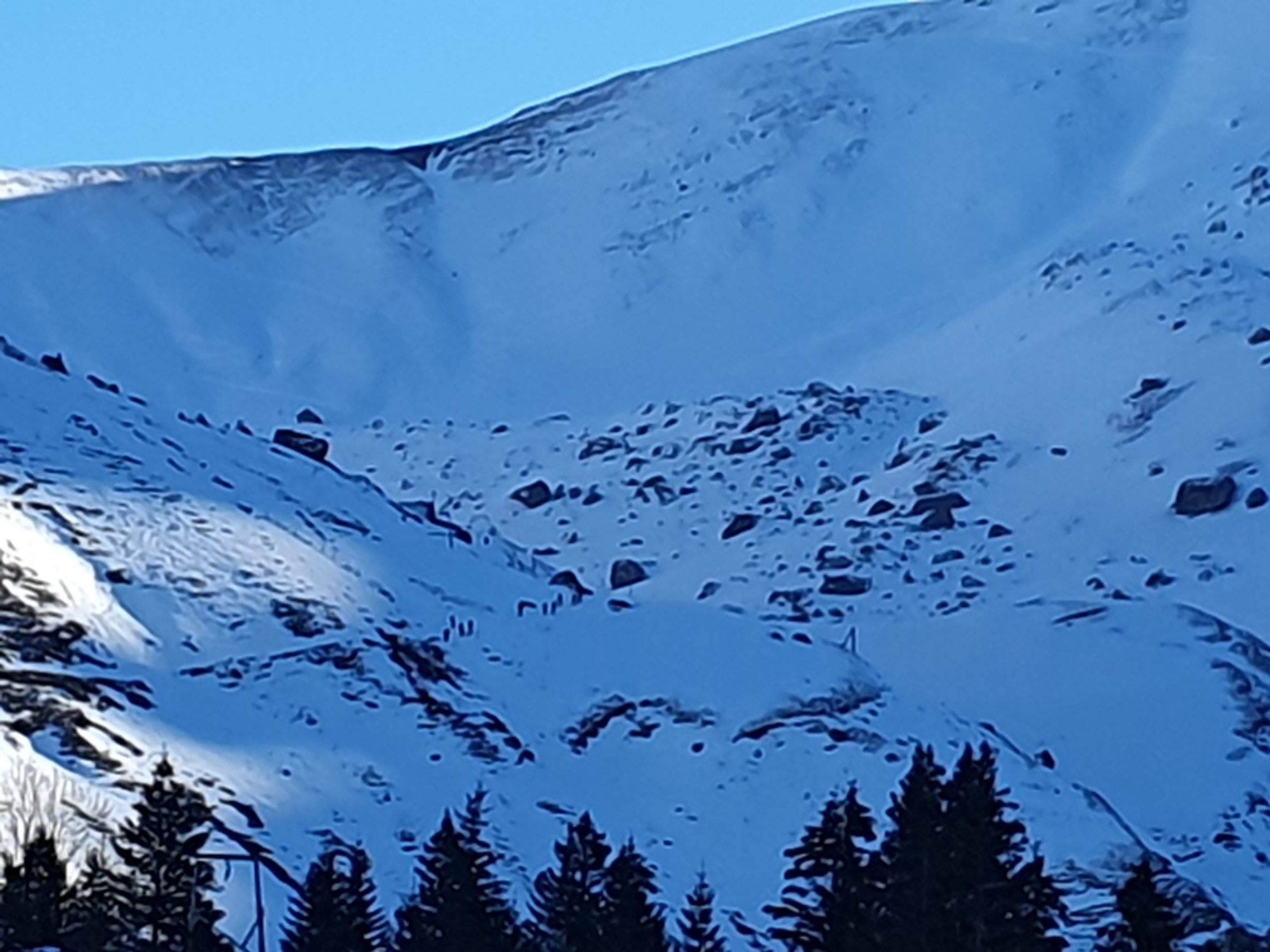 Unterhalb Hasenstöcke auf 2460m gedreht. Wunderbare Abfahrt auf unverspurten Hängen auf Pulverauflage. Mitte dann verspurt, unten dann ruppig. Kein Steinkontakt.