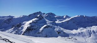 Schnee vom Parkplatz weg. Es sind frühlingshafte Verhältnisse, jedoch sind kaum noch Nassschneerutsche im Gebiet zu erwarten, weshalb man nicht allzu früh aufbrechen muss und die Sonne genießen kann. Sehr windig heute, aber durch den geringen Neuschnee entstand kaum Triebschnee.
