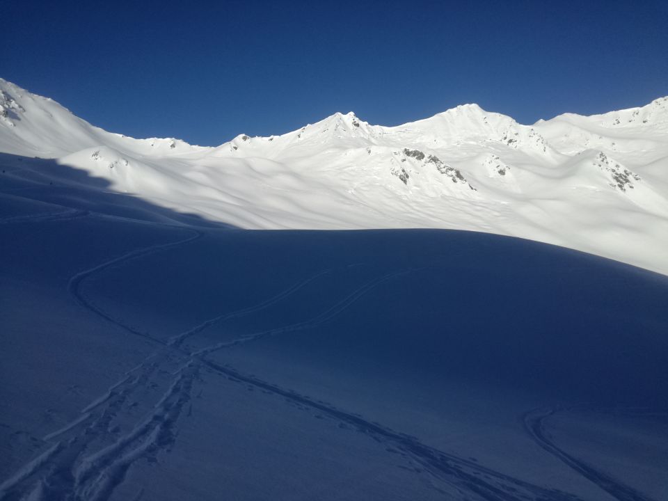 Start Gargellen Bergstation Kristallbahn - St.Antönierjoch - Gafia -Rätschenjoch - Querung zum Schlappinerjoch mit kurzem Gegenaufstieg - Talabfahrt Valzifenztal zurück nach Gargellen.