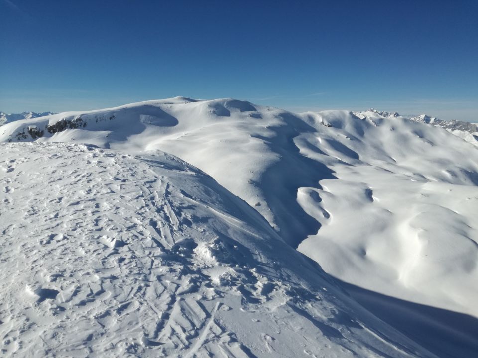 Schneearten im Schattenbereich Hart/Harsch mit ca.10cm Neuschnee- Sonnenseitig Sulz.