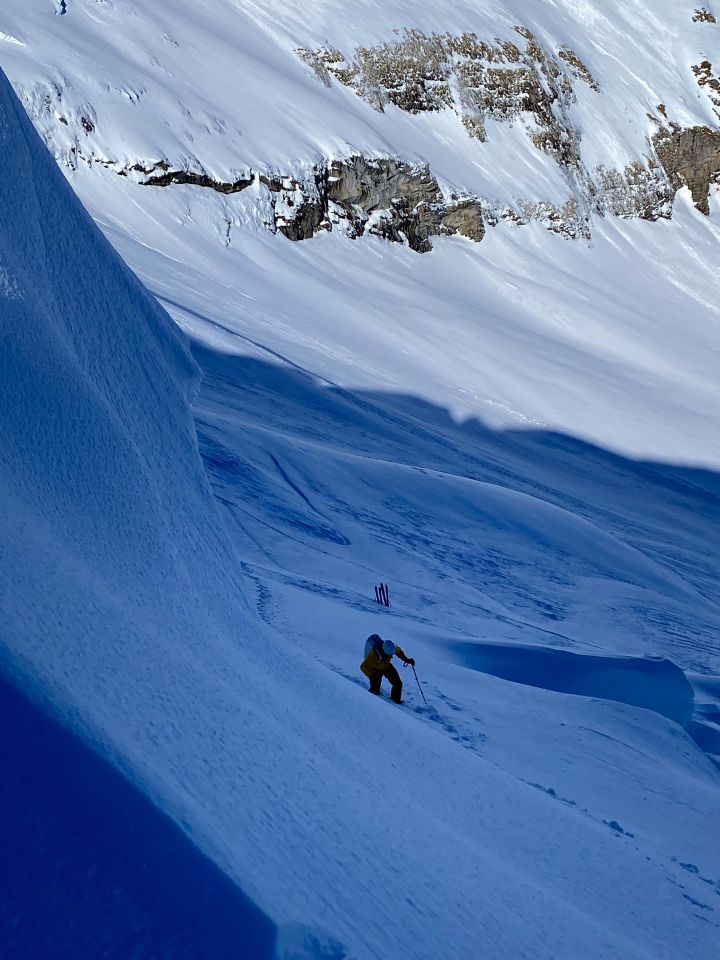 Wir waren die einzigen an diesem Tag. Eine andere Gruppe schien im Euloch umgekehrt zu sein. Die Verhältnisse sind sicher und verzeihen zum Glück auch Fehler, Zeitbedarf war allerdings beträchtlich (fast 8 Stunden inkl. Pausen). Gerade die lange Traverse zurück war zeitraubend, weil bis dann die Müdigkeit spürbar war. Die Tour ist derzeit eher eine für alpinistisch Begeisterte und weniger für abfahrtsorientierte Fahrer, denn es gab kaum Pulver, dafür Presspulver, Bruchharsch oder Sulz.